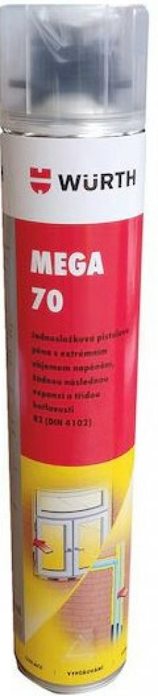 Aplikační pistole na PU pěnu není součástí balení.Chemická báze PolyuretanBarva KrémováPach/vůně UhlovodíkSuchý pro manipulaci po 8 minPodmínky pro stav suchý pro manipulaci 20°C a 60% relativní vlhkost vzduchuLze řezat po 20 minPodmínka pro řezatelnost při 20°C a relativní vlhkosti 60%Schopnost plného zatížení 12 hPodmínka pro plnou zatížitelnost odzkoušeno podle zkušebních metod společnosti WürthMin. teplota zpracování 5 °CMax. teplota zpracování 35 °CTřída stavebních hmot B3 – lehce zápalnéPodmínka pro třídu stavebních hmot Podle normy DIN 4102Odolnost vůči UV záření NeVýtěžnost (objem) přibl. 67 lPodmínky pro výtěžnost / vydatnost Odzkoušeno podle zkušebních metod společnosti WürthObsah balení 770 mlProvedení Tlaková nádobkaDoba použitelnosti od data výroby 12 MěsícePodmínky pro zachování doby použitelnosti od data výroby Skladování v chladu a suchu, 5°C až 25°CNávodPracovní povrch zbavte prachu, mastnoty a jiných nečistot. Povrch může být před aplikací pěny vlhký, avšak nepokrytý jinovatkou nebo ledem.Je vhodné, aby láhev měla před použitím teplotu asi +15 °C až +20 °C. Obsah láhve intenzivně protřepejte minimálně po dobu 1 minuty. Minimální okolní teplota při aplikaci je +5 °C. Pracujete-li při vyšších teplotách než je optimální teplota (+20 °C), doporučujeme, aby rozdíl teploty obsahu láhve a okolí nebyl větší než 5°C.Našroubujte láhev na aplikační pistoli. Pracovní poloha láhve je dnem vzhůru. Množství vypouštěné pěny se ovládá stiskem spouště aplikační pistole. Kvalita i množství vytvrzené pěny je ovlivněna relativní vlhkostí vzduchu. Doporučujeme navlhčit vyplňovaný prostor vodou z lahve s rozprašovačem. Pokud je spára větší než v průměru 5 cm, doporučujeme vyplnit prostor pouze částečně, maximální výška vrstvy 2 cm. Čerstvou pěnu navlhčit a potom pokračovat ve stříkání pěny ve vrstvách do vyplnění prostoru. Pěna při vytvrzování zvětšuje objem, proto vypl- ňujte prostor pouze do 1/3. Je-li relativní vlhkost vzduchu nižší než 35%, je nutné intenzivní zvlhčování.Vytvrzenou pěnu je možno řezat nožem. Povrch je třeba chránit před dlouhodobým působením UV záření.Čerstvou pěnu lze vyčistit PU čističem, vytvrzenou pěnu pouze mechanicky. Bezprostředně po ukončení práce tj. po odšroubování lahve z aplikační pistole, je nutné vyčistit pistoli PU čističem.
