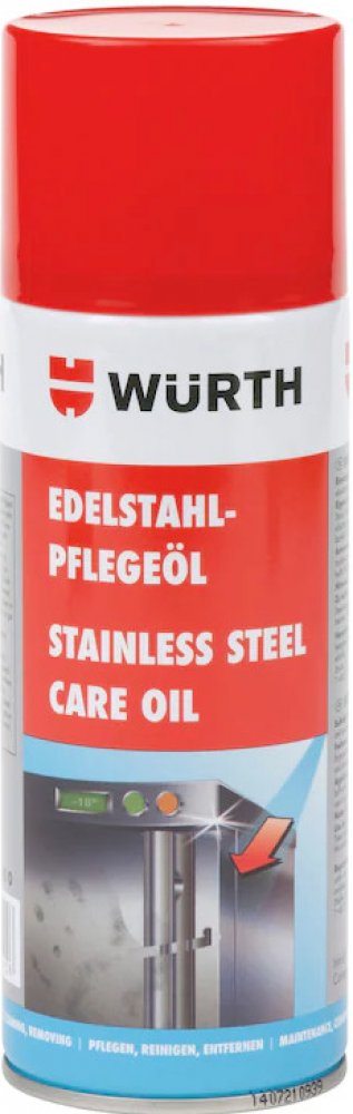 Ošetřující olej odstraňuje lehké zašpinění jako je prach, stopy po leštění, otisky rukou. Poskytuje vodoodpudivý film, povrchy se jeví čisté a lesklé. Přezkoušen pro použití v potravinářských oborech. Oblasti použití Pro povrchy z ušlechtilé oceli, chrom, mosaz, eloxované a emailované kovové povrchy. Použití Nastříkejte na ošetřovaný povrch v tenké jednolité vrstvě, ponechejte krátkou dobu působit a následně povrch přeleštěte suchou měkkou utěrkou. Nenechávejte zaschnout. Nenanášejte na horké povrchy nebo sluncem rozpálené povrchy. Upozornění Zabraňte přímému kontaktu s potravinami. Balení produktu: sprej 400ml
