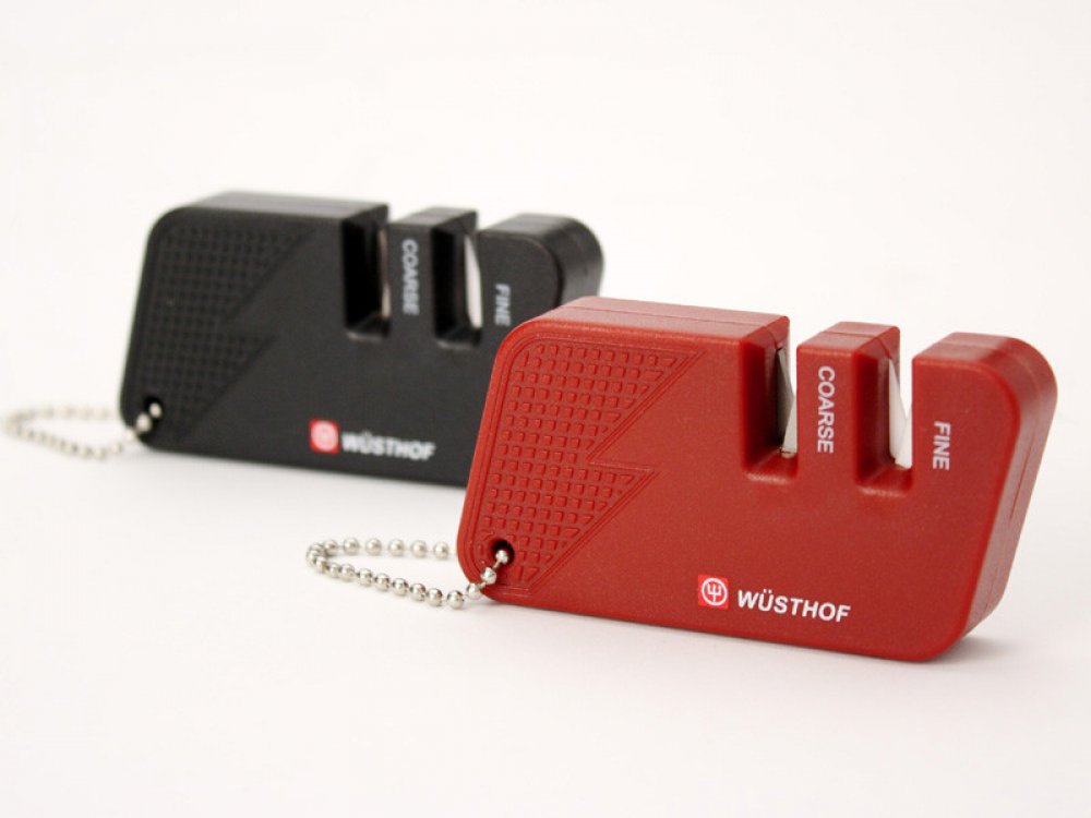 Kapesní ostřič na nože je ideální na cesty. Vybrat si můžete ze dvou stupňů broušení – 1. stupeň pro hrubé dobroušení pro tupé nože, 2. stupeň pro jemné ostření čepele. Brousí v celkovém úhlu 30° = 15° každá strana.