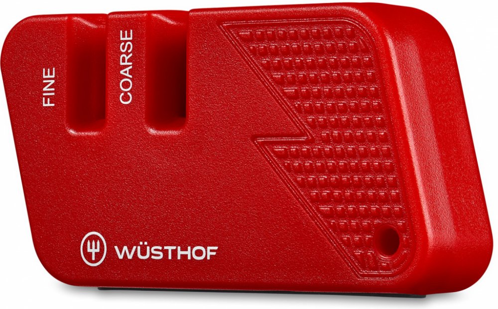 Kapesní brousek na nože dvoustupňový Wüsthof Kapesní brousek na nože dvoustupňový, červený je praktickým nástrojem pro udržování ostrosti nožů. Jeho rozměry jsou 8 cm x 4 cm x 1,5 cm. Firma Wüsthof Dreizack je německým výrobcem nožů s dlouholetou tradicí, která sahá až do roku 1814. Jejich nože jsou vyrobeny z kvalitních materiálů, jako je chrom molybdenová ocel, což zajišťuje vysokou kvalitu a odolnost. Díky dvoustupňovému broušení nože pomocí tohoto brousku získají opět maximální ostrost a budou snadno řezat jako nové. Jemné a hrubé břity na brousku umožňují precizní broušení a dokonalé výsledky. Navíc jeho červená barva dodává do kuchyně stylový a moderní vzhled.