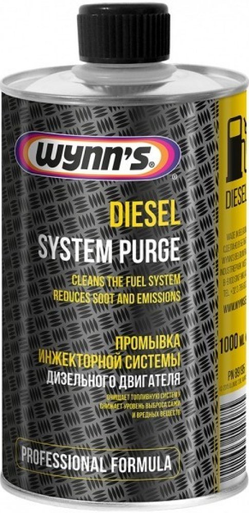 Speciálně vyvinutý čisticí přípravek, který odstraňuje nečistoty a usazeniny v naftovém vstřikovacím systému bez nutnosti demontážen a je určen výhradně pro profesionální použití spolu s přístrojem Wynn´s System Purger nebo Wynn´s Remote Control Purger (RCP). Odzkoušeno a certifikováno v TÜV Product Service.