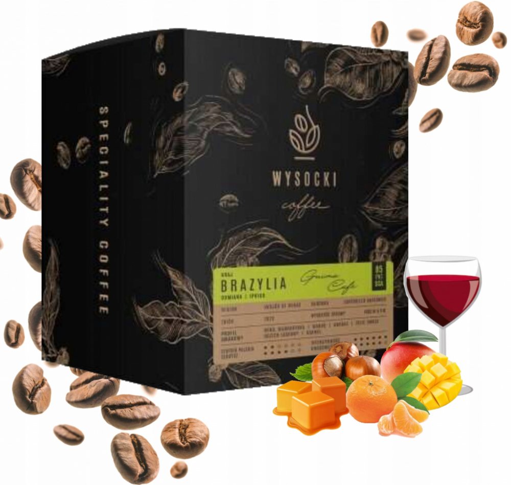Wysocki Coffee Brazílie Guima Cafe je jedinečná a komplexní směs chutí, jejíž dominantou je intenzivní kyselost. V jejím chuťovém profilu objevíme akcenty vína, mandarinky, manga, ananasu, žlutého ovoce, lískových oříšků a karamelu.