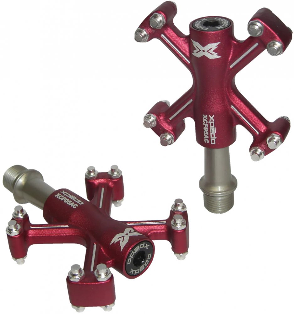 "Platformové pedály s unikátním designem značky X-pedo. Tělo je vyrobeno z kovaného hliníku 6061 a osa je vyrobena z Cr-Mo oceli.
