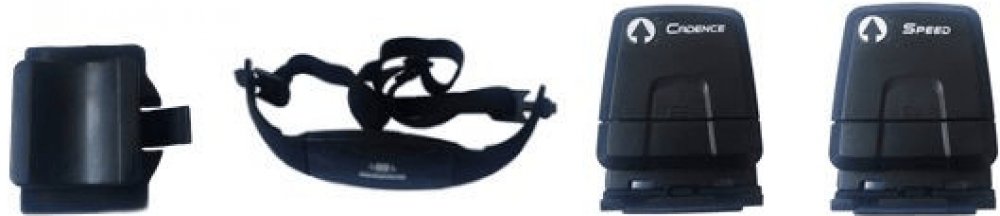 • držák na řidítka nebo představec s podložkou • magnety pro měření rychlosti a kadence • senzory měření rychlosti a kadence s podložkami • hrudní pás pro měření tepové frekvence • 4× baterie …