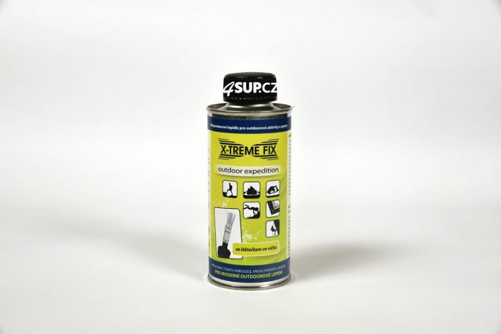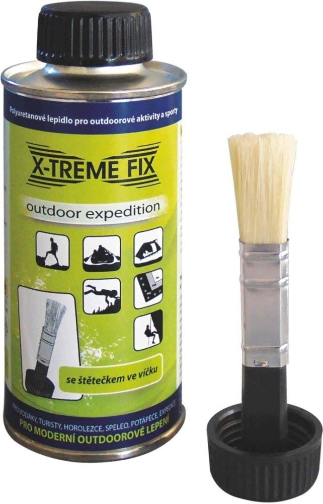 NÁVOD NA LEPENÍ:Lepené plochy musí být suché, čisté. Některé povrchy pryží (Hypalon ®) je třeba před lepením zdrsnit smirkovým papírem. Pro dokonalé spojení doporučujeme lepené plochy odmastit acetonem (platí pouze pro mastné povrchy, jinak není nutné). Štětcem nebo stírkou naneste lepidlo v tenké vrstvě na obě lepené plochy. U savých povrchů proveďte jeden popřípadě i dva před nátěry. Po zavadnutí lepidla (3-5 min.) přiložte záplatu a silou ji přitlačte. K tomuto je vhodné použít váleček. Konečné pevnosti spoje je dosaženo po 24 hodinách. Po jedné hodině je však dosaženo pevného spojení a spoje snesou i mírné zatížení (např. při nouzových opravách nafukovacích člunů). Spoj je pružný a odolný proti vodě. Znečištěné pomůcky od lepidla lze očistit acetonem. Použitím tvrdidla X-TREMEFIX HARTER lze docílit rychlejšího vytvrzení spojů a zvýšení jejich tepelné odolnosti. Dávkování tvrdidla: na 100 dílů lepidla 5 dílů tvrdidla. Tvrdidlo není součástí lepidla, prodává se zvlášť.
