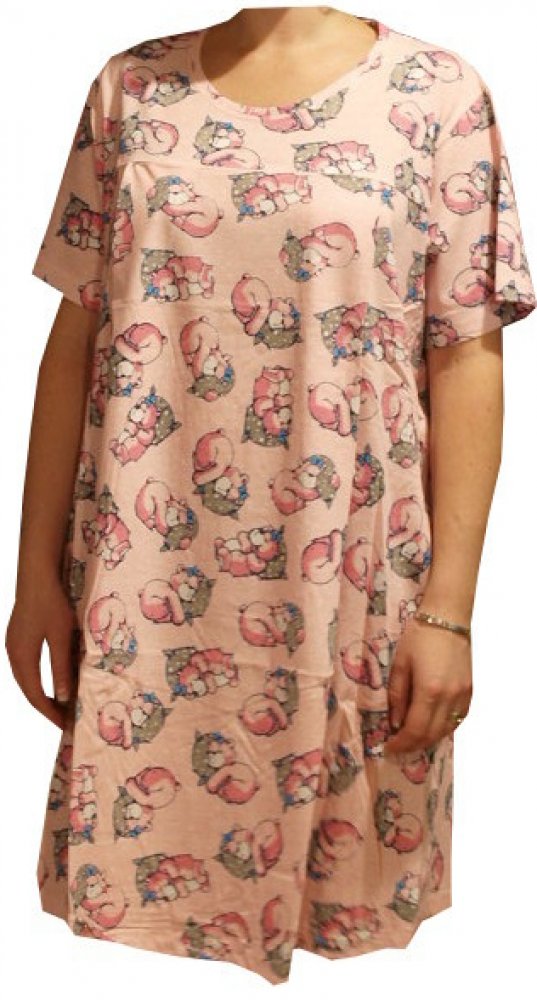 Dámská noční košile určená především pro maminky je velice příjemná na nošení díky materiálu 100% bavlna. Noční košile je šitá, aby rostoucí břísko v těhotenství mělo dostatek prostoru. Noční košile je barvy růžové, výstřih u krku je do O. Noční košile je s motivem medvídka.