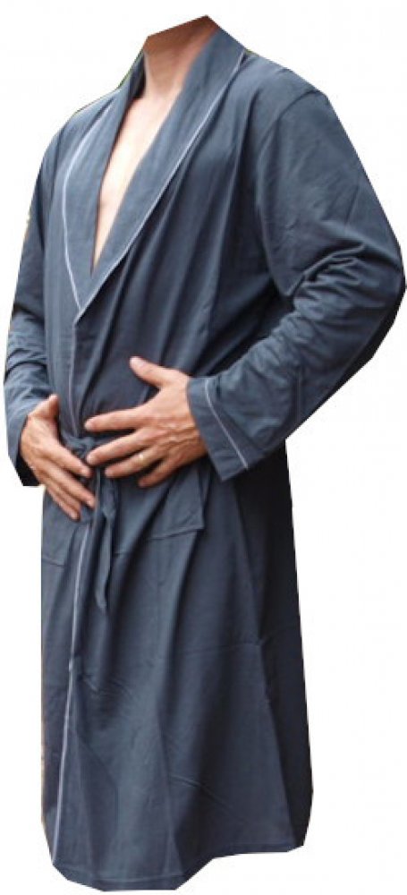 Pánský bavlněný župan je barvy tmavě šedé. Župan je vyroben ze 100% bavlny a župan má na bocích kapsy, v pase se dá župan stáhnout páskem, který je ve stejné barvě.