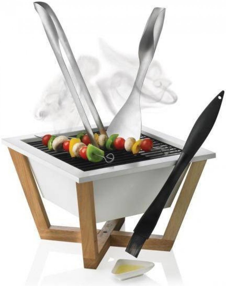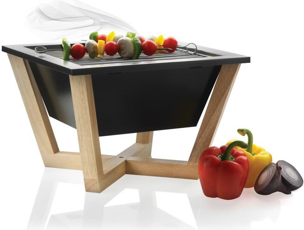 Designový barbecue gril v moderním stylu s tělem z uhlíkové oceli a designovým podstavcem ze dřeva. Díky svým kompaktním rozměrům je ideálním pomocníkem nejen na zahradu, ale také balkon či terasu. Je lehce rozložitelný a snadno se tak převáží na chatu nebo na výlety.