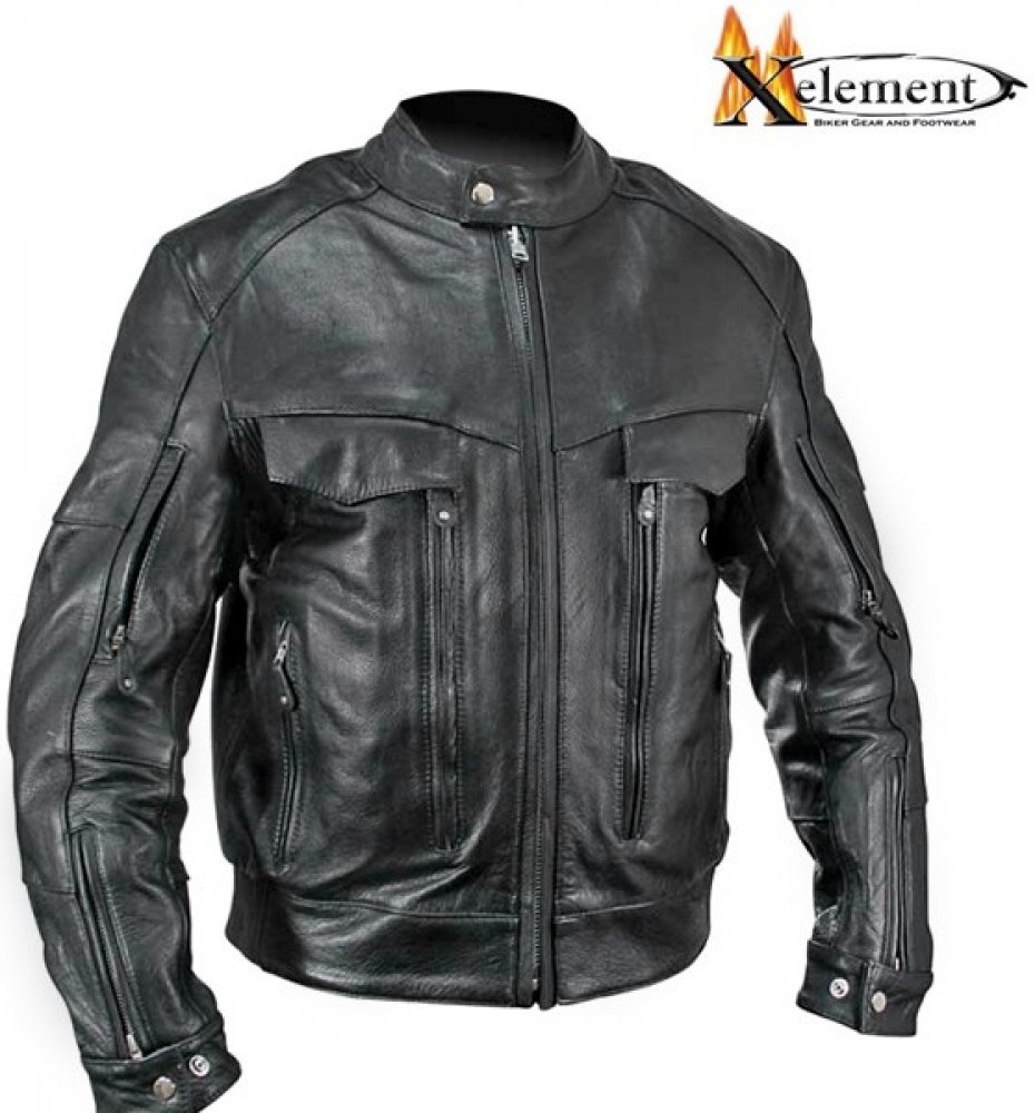Xelement chopper kožené krátké ventilační otvory 3-sezónní klasické černé kožené
