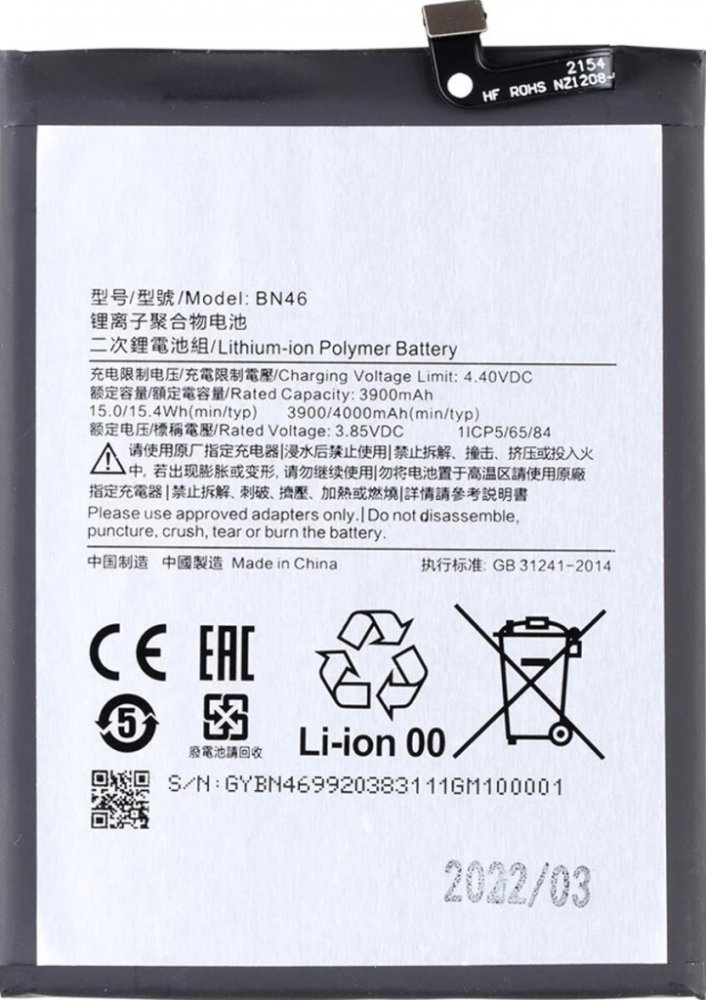 Baterie je vybavena ochranou proti přebití, přehřátí i zkratu, takže se můžete spolehnout na bezpečné fungování telefonu i při častém nabíjení. Moderní technologie zajišťuje stabilní výkon i po stovkách cyklů.