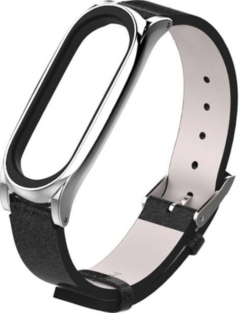 Xiaomi Mi Band 3/4/5/6 Kožený style řemínek Černostříbrná MBSCZ-5KO03