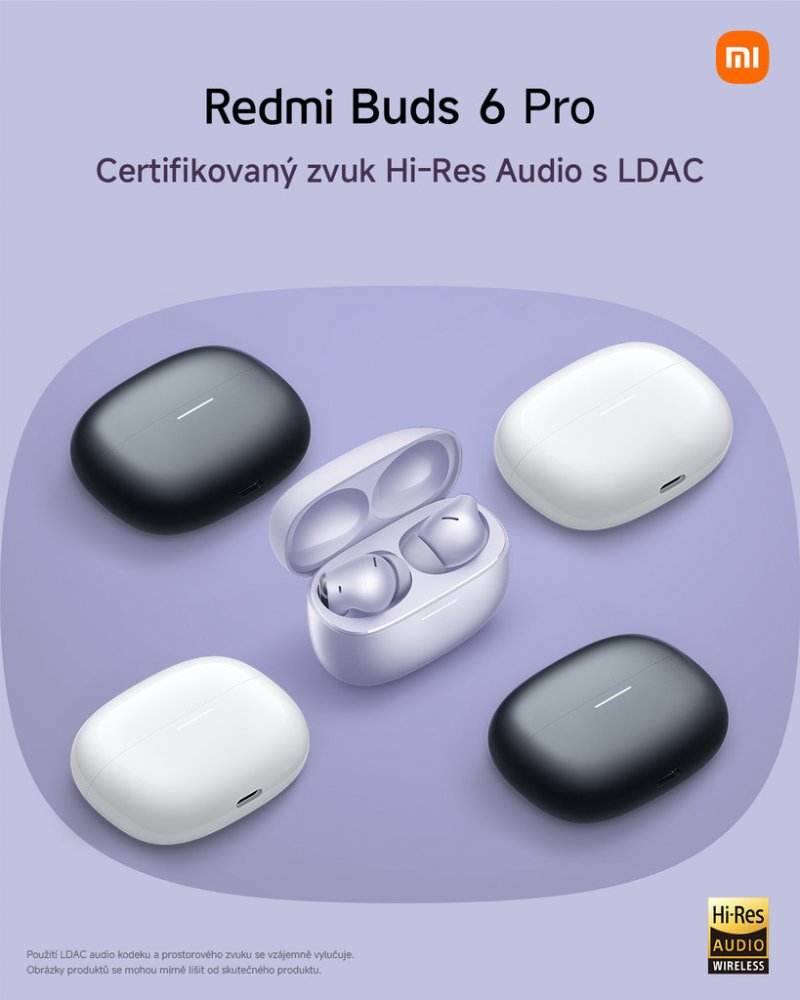 Díky certifikaci bezdrátového zvuku s vysokým rozlišením mají sluchátka Redmi Buds 6 Pro lepší kvalitu zvuku a extrémně bezztrátový zvuk a podporují přenos UHD pomocí zvukového kodeku LDAC.