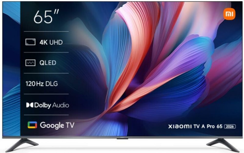 Chytrá 4K QLED televize s technologií zajišťující plynulé zobrazení pohybu • rozlišení 4K UHD • úhlopříčka 65" (165 cm) • elegantní kovový povrch s velmi tenkým rámečkem • technologie Dolby AudioTM, DTS:X, DTS Virtual:X • herní režim Game Boost • systém Google TV • Bluetooth 5.0 • Wi-Fi • podpora Miracast • Google Assistant • Apple AirPlay 65″ televizor Xiaomi TV A Pro 65 2026