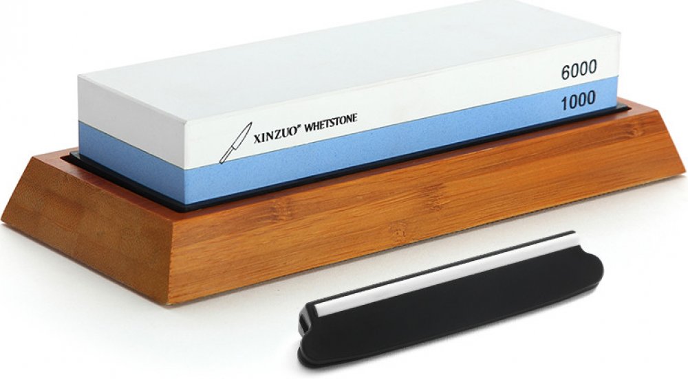 Brousící kámen XinZuo s bambusovou základnou, která je ze spodní strany vybavena gumovou podložkou pro zabránění klouzání. Brousící kámen má dvě hrubosti 1000 na malé škrábance a nerovnosti, hladší strana 6000 slouží k dokonalému vyleštění a vyhlazení čepele pro dokonalé ostří. Před broušením je dobré kámen ponořit na 5 minut do vody, případně potřít vodou. Součástí je vodítko na držení správného úhlu. S brousícím kamenem si nože XinZuo zachovají ostří na dlouhou dobu.