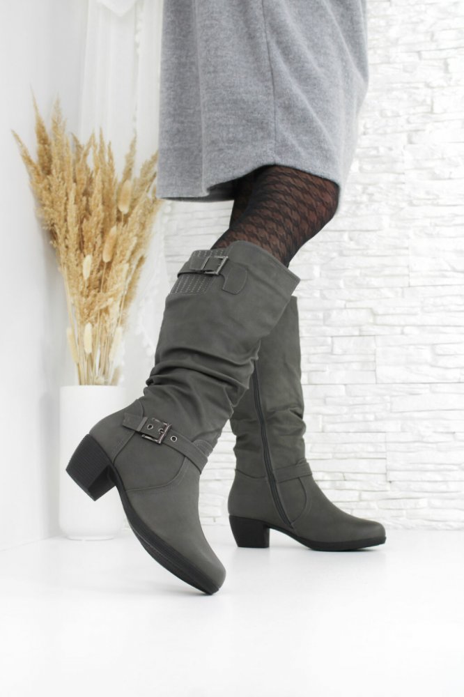 Šedé kozačky na podpatku
