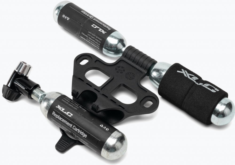 XLC kartušová pumpička PU-M03 vhodná pro rychlé huštění pneumatik kol, koloběžek, elektrokol. Dualní hliníková hlava vhodná pro všechny ventilky DV/SV/AV. Sada obsahuje držák s možností montáže pod košík cyklistické láhve a náhradní dvě 16g kartuše se závitem a EVA-ochranou.