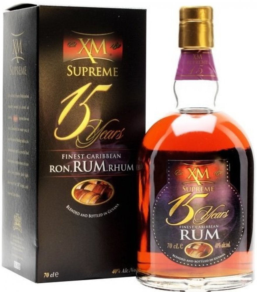 Rum XM Supreme 15 YO Demerara je luxusní 15letý rum z Guyany, vytvořený v klasickém "demerara" stylu (jedná se o extra jemný a extra tmavý rum vyrobený z melasy, jehož typickou vlastností je výrazná chuť po karamelu).