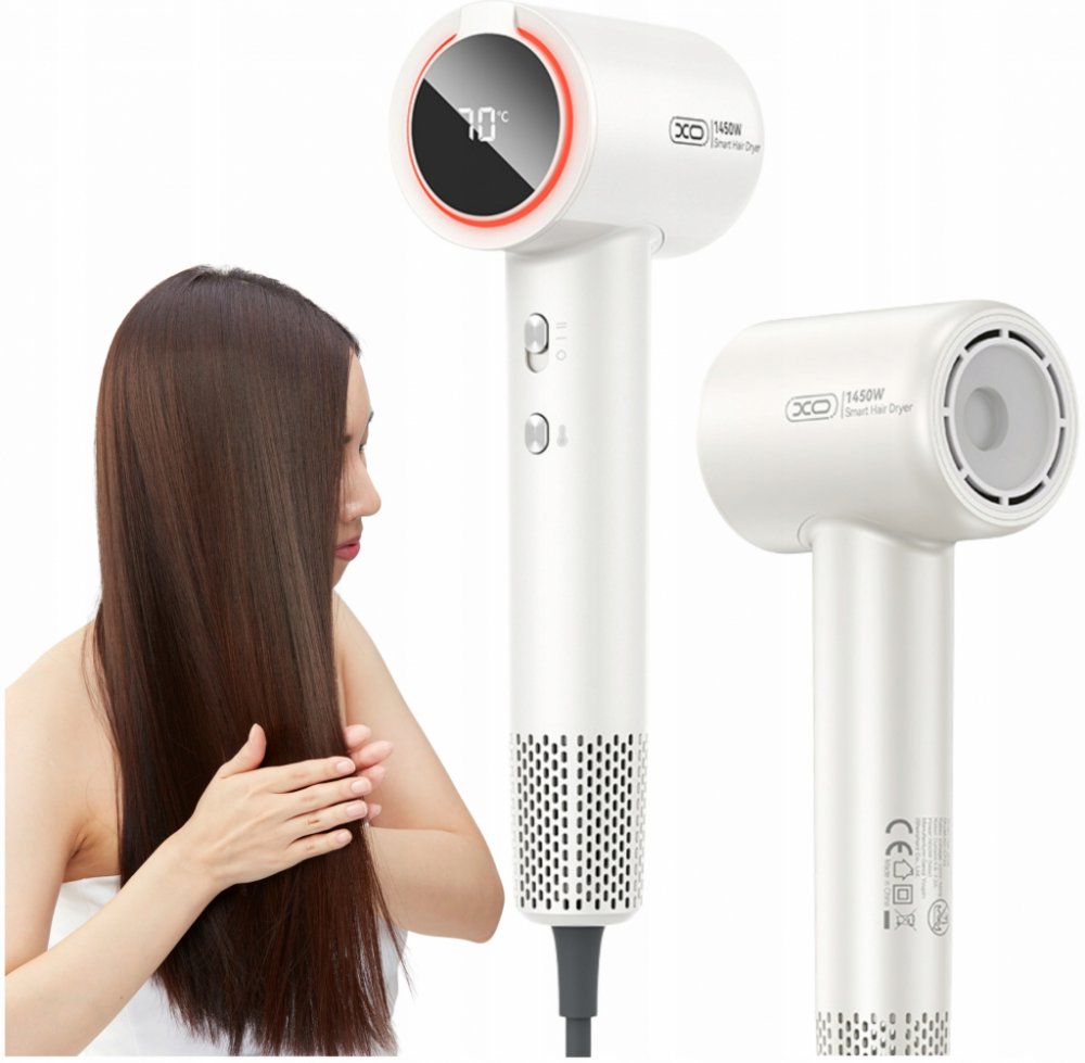 ❤ Vysoušeč vlasů s displejem XO – perleťově bílýfén XO CF29 je elegantní, profesionální zařízení s výkonem 1450 W, které rychle a efektivně vysuší vlasy. Technologie ionizace vyhlazuje prameny a snižuje elektrizování. Digitální displej umožňuje přesné ovládání teploty a bezkartáčový motor zaručuje tichý a efektivní provoz. Tenká konstrukce v perleťově bílé barvě se skvěle hodí do koupelny i na výl...