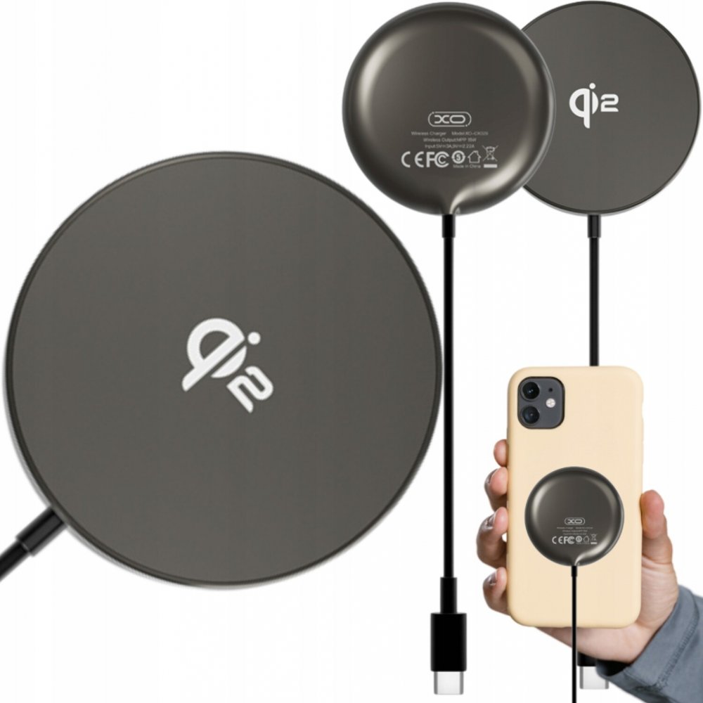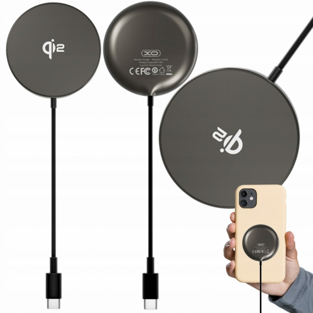 XO bezdrátová indukční nabíječka QI2 CX029 magnetická 15W černáIndukční nabíječka s certifikací Qi a magnetickým upevněním. Je kompatibilní se systémem MagSafe a zajišťuje rychlé nabíjení i nejnovějších modelů iPhone. Přizpůsobení výkonu nabíjenému zařízení v rozsahu 5-15 W umožňuje jeho použití i s menší elektronikou, jako jsou chytré hodinky a sluchátka.