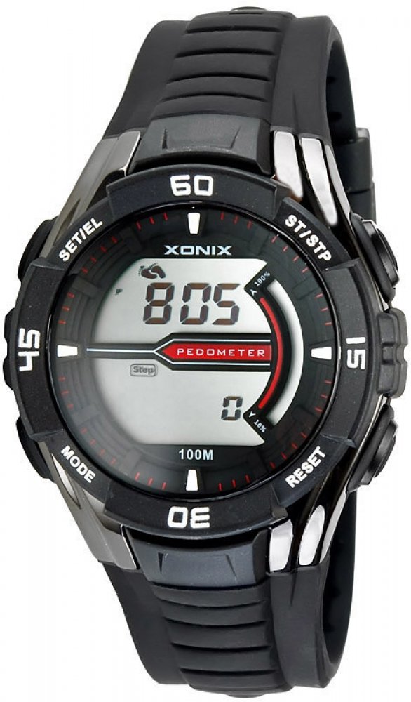 Značka XONIX Model XPJK Barva řemínku Černá Barva pouzdra Černá Barva ciferníku Šedá Minimální obvod řemínku / náramku 14 cm Maximální obvod řemínku / náramku 23 cm Výška pouzdra 5 cm Šířka pouzdra 4,8 cm Tloušťka pouzdra 1,5 cm Hmotnost 55 g Strojek Quartzový - na baterie Materiál Syntetická hmota Sklíčko Akrylátové Upínací Syntetický řemínek Antialergické Ano Vodotěsnost 100m Ciferník Digitální Podsvícení ciferníku / displeje Ano Formát času 12h / 24h Datum Ano Alarm 1 alarm Timer Ne Časová pásma Ne Stopky 1 mezičas Krokoměr Ano Sporttester Ne Dodatečné funkce Ne Podrobní informace Čas zimní/letní (DST - Daylight Saving Time); Krokoměr: rozsah měření: 0 až 99 999 kroků, ušlá vzdálenost: 0 až 9 999,99 km, spálené kalorie: 0 až 99 999 kcal, čas: 0:00 až 23:59:59, nastavení vzdálenosti v krocích - zvukový signál po dosažení cíle, nastavení délky kroku a tělesné váhy, vybaven akcelerometrem; Archiv měření (podle data) Záruční doba 24 měsíců Balení Krabička