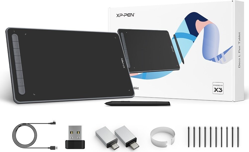 Dostupné Bluetooth: Deco LW pen tablet je vybaven čipem Bluetooth v5.0, který umožňuje práci bez kabelů. Můžete si tak uspořádat svůj tvůrčí prostor a používat pero XP-PEN, ať už vás inspirace zavede kamkoli. Pero tablet Deco LW pracuje více než 10 hodin díky velkokapacitní lithiové baterii (1000 mAh/3,7 V), která poskytuje energii po celý den.Inteligentní čipové pero X3: Nové inteligentní čipové pero X3 je rychlejší, stabilnější a přesnější, pero X3 nabízí zcela nový zážitek z kreslení s jemnější počáteční citlivostí přítlaku a mnohem kratší vzdáleností zasunutí hrotu. Jeho přesnost je srovnatelná s tužkou. A díky 8 192 úrovním citlivosti přítlaku a funkci náklonu 60° můžete bez námahy kreslit malé čáry a vytvářet jedinečná mistrovská díla.8 efektivních klávesových zkratek: Pero Deco LW tablet má osm klávesových zkratek, které lze přizpůsobit různým potřebným kombinacím kláves a které nahrazují klávesnici počítače. Řada hmatových hrbolků na klávesách umožňuje rychle identifikovat správnou klávesovou zkratku i v tmavém prostředí, což urychluje vaši práci.Vysoká kompatibilita: Kreslící tablet Deco LW spolupracuje s operačními systémy Windows 10/8/7 a Mac OS x 10.10, Android 6.0, Chrome OS 88 nebo vyšší verze a Linux, je kompatibilní s většinou kreslícího softwaru, jako je Photoshop, Painter, Illustrator, Clip Studio, Lightroom, Sketchbook Pro, Manga Studio, CorelPainter, FireAlpaca, OpenCanvas, Paint Tool Sai2, Krita atd. a Word, PPT, Excel, PDF, OneNote a další software. Ideální pro domácí kancelář a videokonference.Artrage Lite a Explain Everything: Při zakoupení grafického tabletu získáte licence . ArtRage 5 je snadno použitelný, profesionální program pro digitální kreslení pro Windows a Mac OS. Explain Everything je tabule, kterou používají miliony učitelů, vychovatelů, lektorů, studentů a kancelářských pracovníků po celém světě k vytváření digitálního obsahu pro online kurzy a videokonference.Součástí dodávky je1 x tablet s perem1 x pero X3 Elite1 x adaptér USB na USB-C1 x adaptér USB na Micro-USB10 x hroty1 x kabel USB1 x odstraňovač hrotů1 x stručný návod k použití1 x záruční list1 x přijímač Bluetooth Product number: MPVX3YC/A