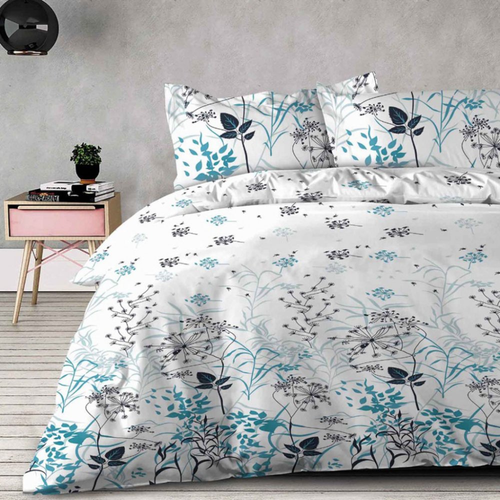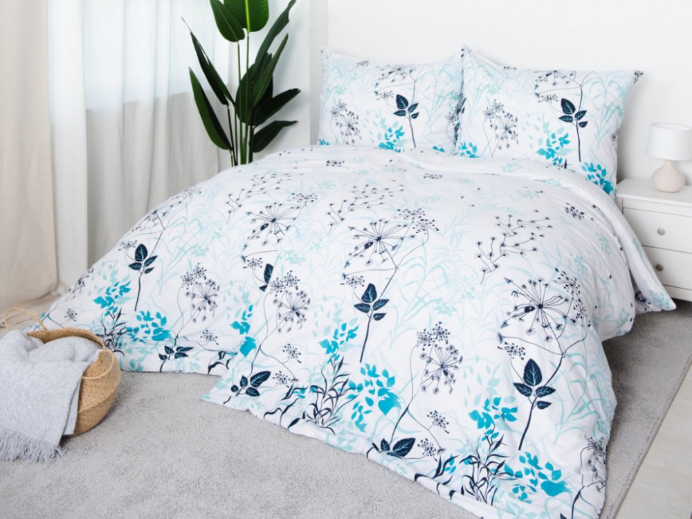 Usínání v náručí florálních vzorů vám dopřeje bavlněné povlečení AIGA v odstínu modré a černé na bílém podkladu. Svěží barevnost dodá ložnici pozitivní energii, která vám zaručeně zvedne náladu. Navíc hladký materiál z prodyšné 100% bavlny dobře absorbuje vlhkost, je odolný a příjemný na dotek co přispívá k uvolněnému a klidnému spánku. Využijte praktický set 2 + 2 na dvě klasické lůžka.