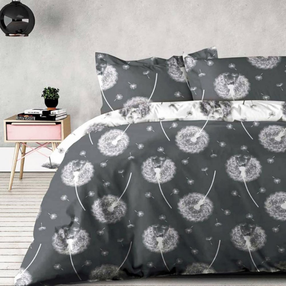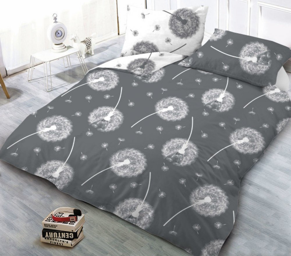 Xpose bavlna povlečení Pampelišky Duo šedé bílé 200x220 70x90