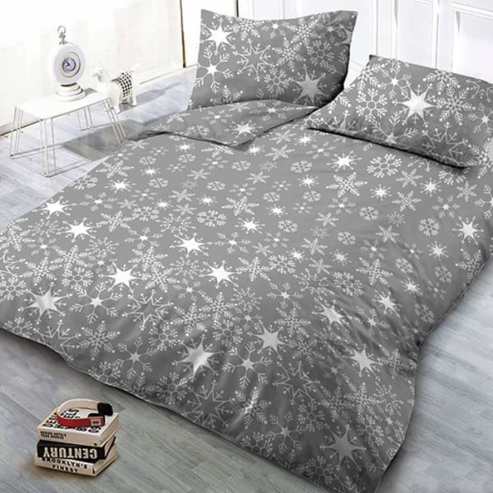 Prodloužené povlečení a motiv JON plný sněhových vloček na šedém podkladu je vhodné do každé ložnice či pokoje. Tento design se hodí k jakékoliv barvě prostěradel či dekorací podle vaší nálady a fantazie. Užijte si jedinečný textilní kousek povlečení v hladké odolné bavlně, která díky své vzdušnosti a na dotyk příjemnému povrchu přispěje ke kvalitě spánku. Vylaďte si ložnici do posledního puntíku s naší nabídkou mikroplyš.