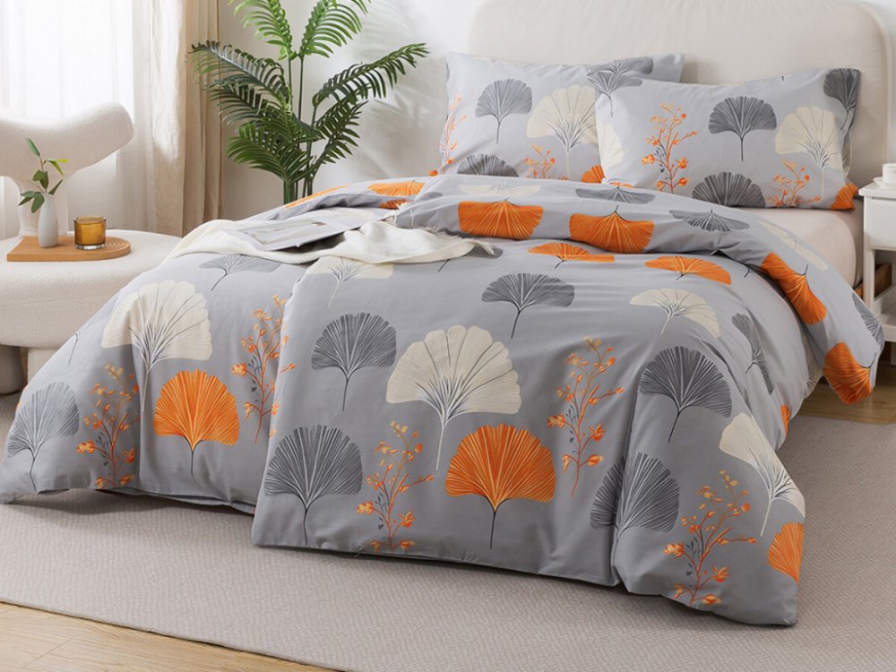 Stylové šedé povlečení se vzorem listů v elegantním oranžovém provedení přináší do vaší ložnice harmonii přírody a moderní design. Díky neutrální šedé v základu a teplému akcentu v oranžové barvě působí povlečení svěže a oživí každý interiér. Oceníte také jemnost Renforcé bavlny, vysokou savost, vzdušnost a odolnost materiá...