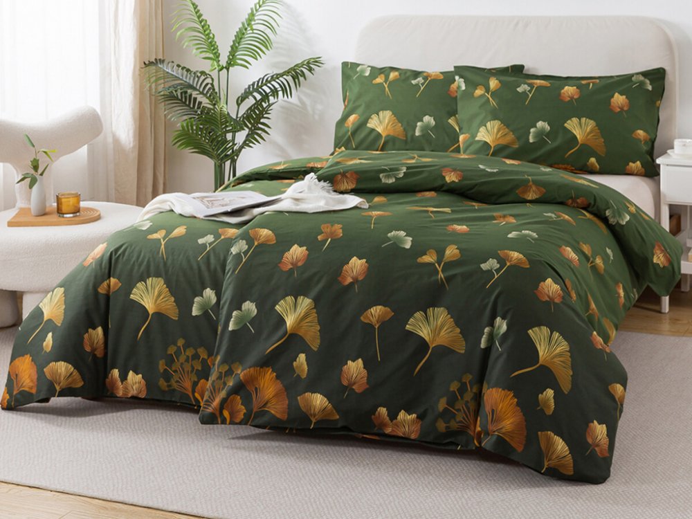 Zelené povlečení se vzorem listů v elegantním hnědém provedení přináší do vaší ložnice harmonii přírody a moderní design. Díky tmavě zelené v základu a teplému akcentu v hnědé barvě působí povlečení uklidňujícím a příjemným dojmem. Samozřejmostí renforcé bavlny je na dotek příjemný povrch, savost i vzdušnost a odolnost materiálu vůči častému praní. Při praní můžete klidně zvolit vyšší prací teploty úprava bavlny renforcé a kvalitní barvy to vydrží.