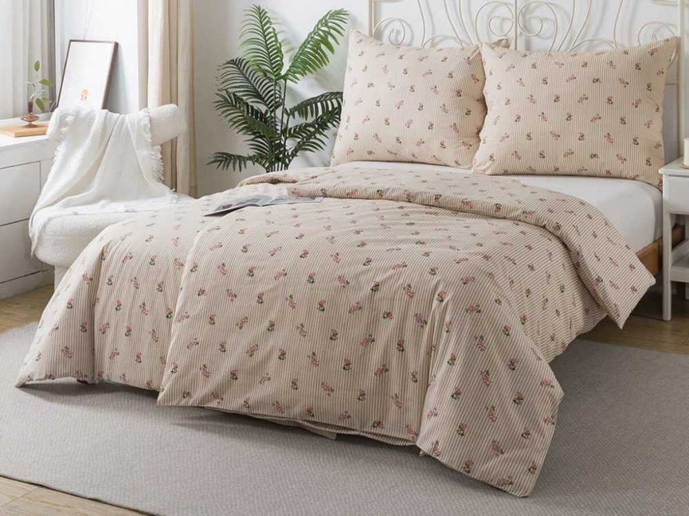 Renforcé povlečení – jemný proužek a růžičky pro retro ložnici i na chalupu
