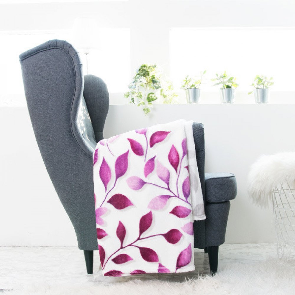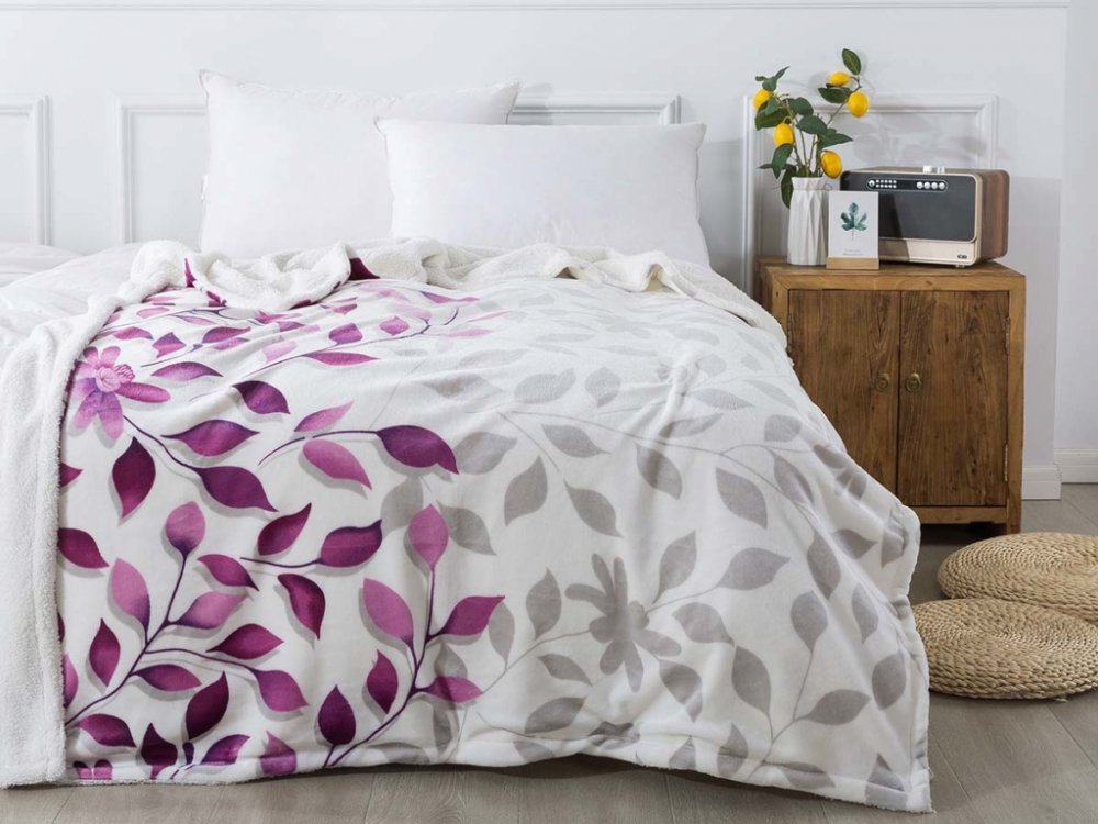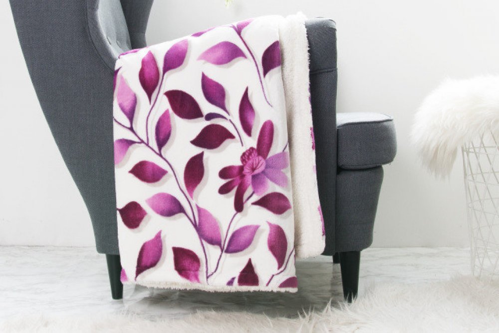 Deky s beránkem a svěží florální motiv IVANKA v odstínech šedé a fialové na světlém podkladu celou místnost rozzáří a vdechnou ji pozitivní energii. Užijete si ji při odpočinku zejména v zimním období. Je vhodným dárkem pro rodinu, přátele či věčné zimomřivce. Deku lze také povléknout a využít jako přikrývku na spaní.