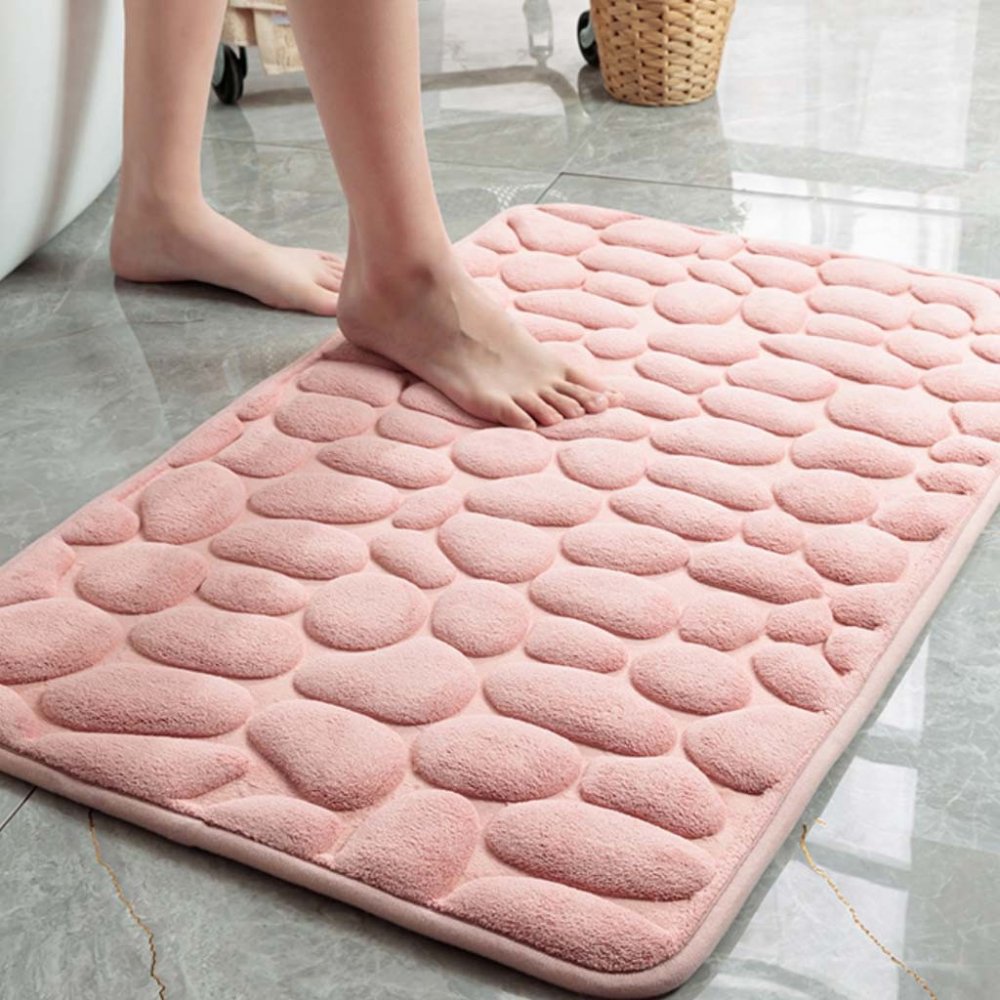 Koupelnová předložka, vzor oblázků i pudrová barva je to pravé ořechové pro trendy interiér a vyladěný koupelnový textil. Dopřejte si maximální pohodlí i příjemné teplo a savost, které vám nabízí tato koupelnová předložka z paměťové pěny. Uklouznutí se bát nemusíte. Protiskluzová koupelnová předložka zajistí vaši bezpečnost po koupeli. Navíc díky propustnosti tepla je tato předložka do koupelny i menší rozměr 40x60 vhodná na podlahové topení. Vylaďte si koupelnu k dokonalosti.