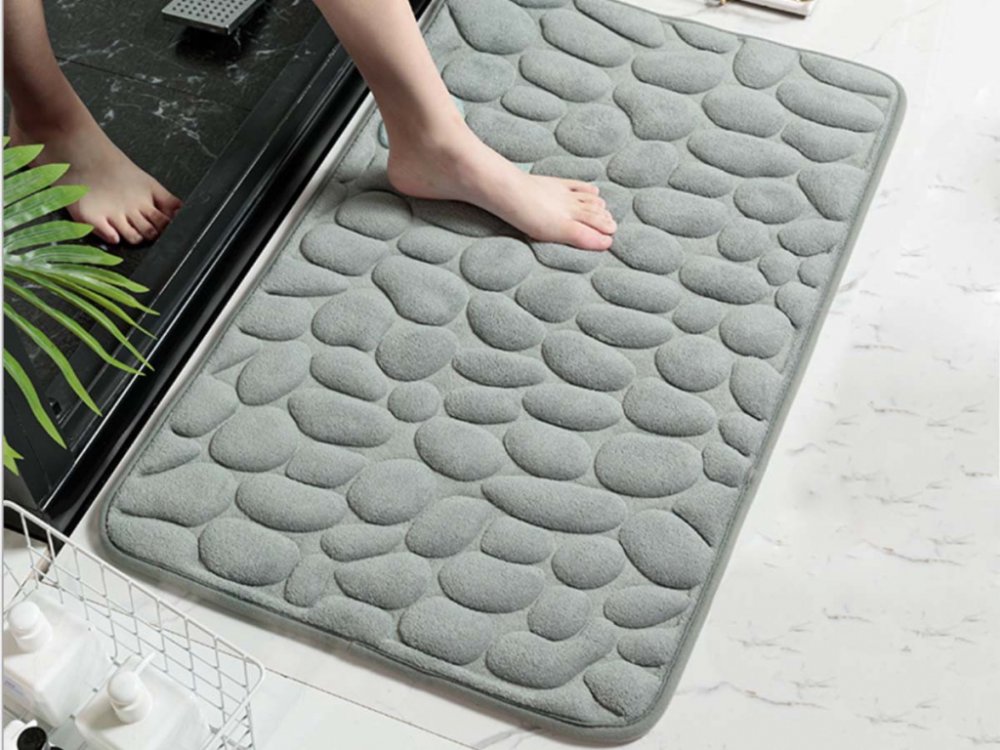 Koupelnová předložka šedá a vzor oblázků je to pravé ořechové pro trendy interiér a vyladěný koupelnový textil. Dopřejte si maximální pohodlí i příjemné teplo a savost, které vám nabízí tato koupelnová předložka z paměťové pěny. Uklouznutí se bát nemusíte. Protiskluzová koupelnová předložka zajistí vaši bezpečnost po koupeli. Navíc díky propustnosti tepla je tato předložka do koupelny a menší rozměr 40x60 vhodná i na podlahové topení. Vylaďte si koupelnu k dokonalosti.