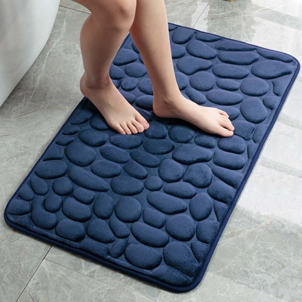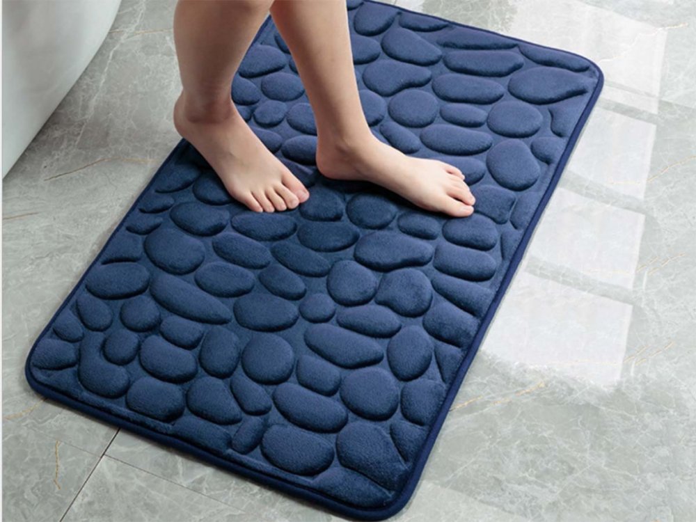 Modrá koupelnová předložka se vzorem oblázků krásně doladí hlavně světlý interiér koupelny. Dopřejte si maximální pohodlí, příjemné teplo a savost, které vám nabízí tento koberec s paměťovou pěnou. Navíc protiskluzová vrstva zajistí vaši bezpečnost po koupeli a díky propustnosti tepla je vhodná i na podlahové topení.
