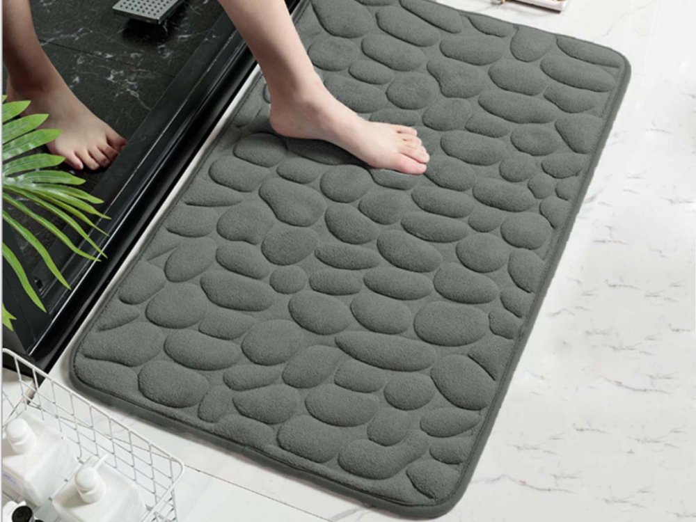 Koupelnová předložka šedá a vzor oblázků je to pravé ořechové pro trendy interiér a vyladěný koupelnový textil. Dopřejte si maximální pohodlí i příjemné teplo a savost, které vám nabízí tato koupelnová předložka z paměťové pěny. Uklouznutí se bát nemusíte. Protiskluzová koupelnová předložka zajistí vaši bezpečnost po koupeli. Navíc díky propustnosti tepla je tato předložka do koupelny vhodná i na podlahové topení. Vylaďte si koupelnu k dokonalosti.
