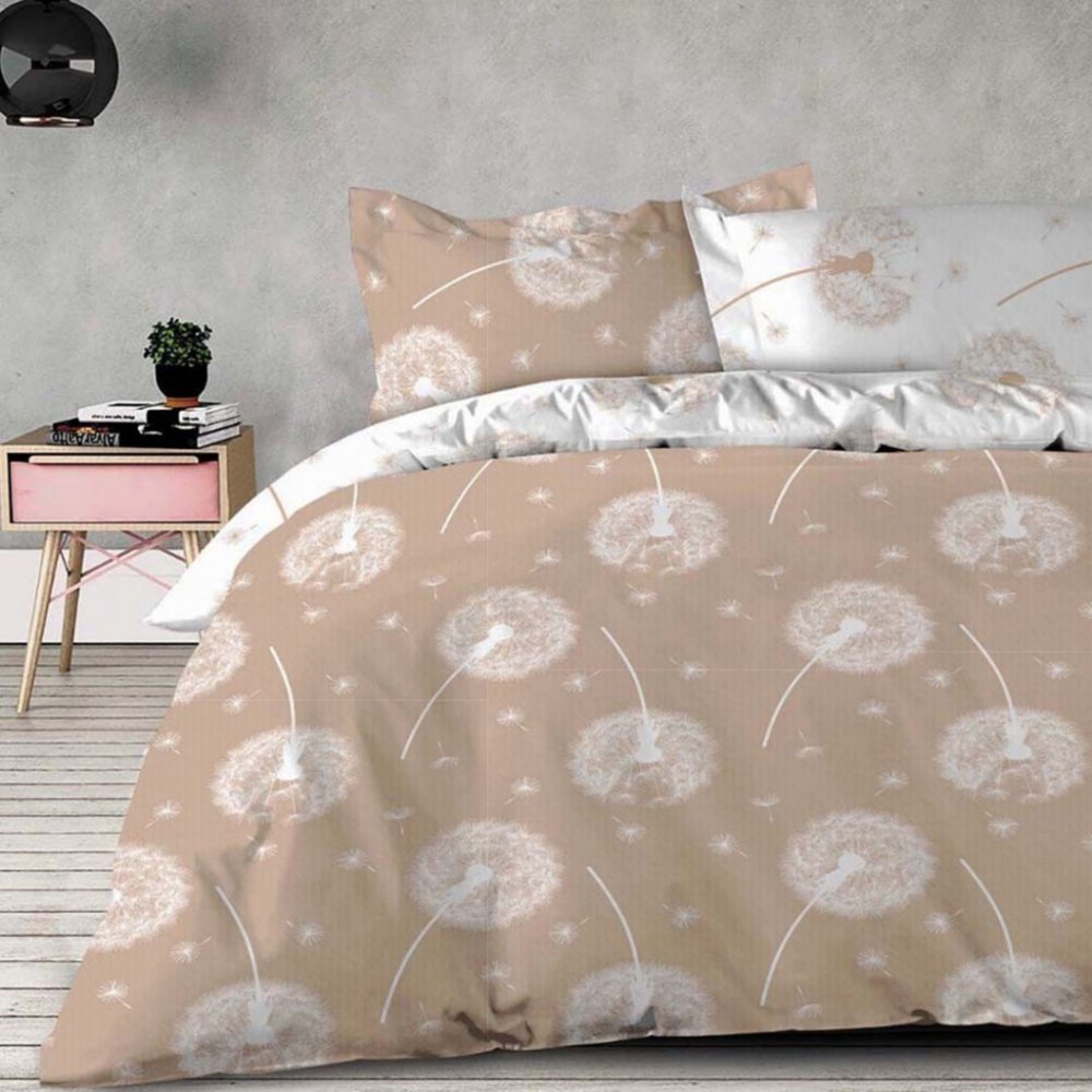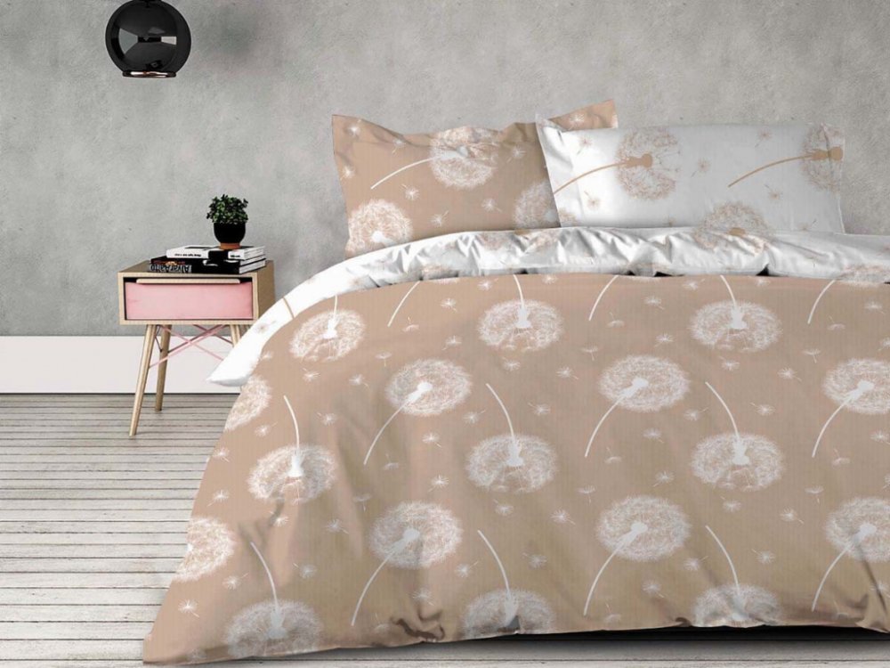 Vzor odkvetlých pampelišek a poletujícího chmýří doladí interiér ložnice k dokonalosti. Krepové povlečení je zhotoveno v DUO provedení barev jako oboustranné povlečení a můžete jej měnit podle nálady či ročního období. Na léto se hodí bílý podklad s hnědým potiskem a v zimních měsících hnědý základ s bílým vzorem. Díky savému a prodyšnému materiálu ze 100% bavlny se strukturou krepu splňuje všechny předpoklady k dobrému spánku. Navíc vám práci usnadní nenáročná údržba bez žehlení.