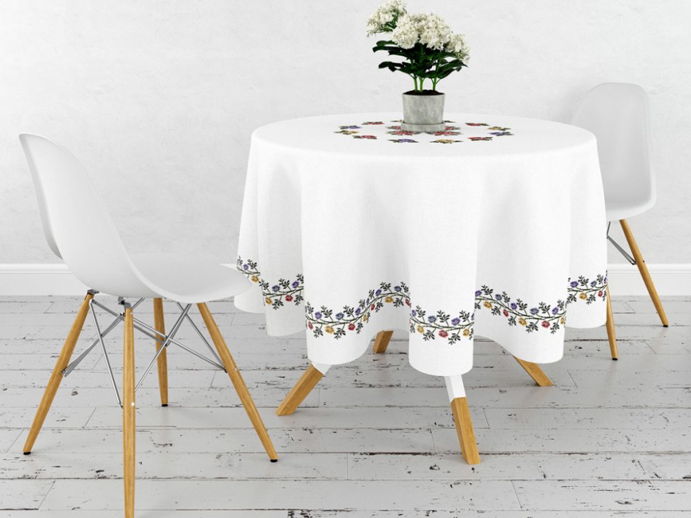 Kruhové ubrusy se zorem květin pro romantický interiér