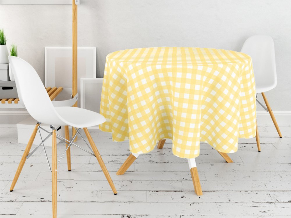 Ubrusy a vzor kostek dokážou dodat styl i eleganci a taky navodit sváteční atmosféru v kuchyni či jídelně. Tyto ubrusy na kulatý stůl, nejenže přispějí k stylovému stolování, ale účinně ochrání povrch stolu proti poškrábání. Ubrus je vyroben z teflonového materiálu, který snadno vyperete, rychle vysušíte a je opět nachystaný zkrášlit vaši domácnost a zpříjemnit vám vzácné chvíle strávené s rodinou. Spodní strana ubrusu je bílá, kraje jsou ukončeny zdobným obloučkovým zastřižením bez obšití.Ubrusy můžete efektně doplnit o sedáky na židle, ale i o utěrky v oblíbené barvě a získáte interiér vyladěný do puntíku.