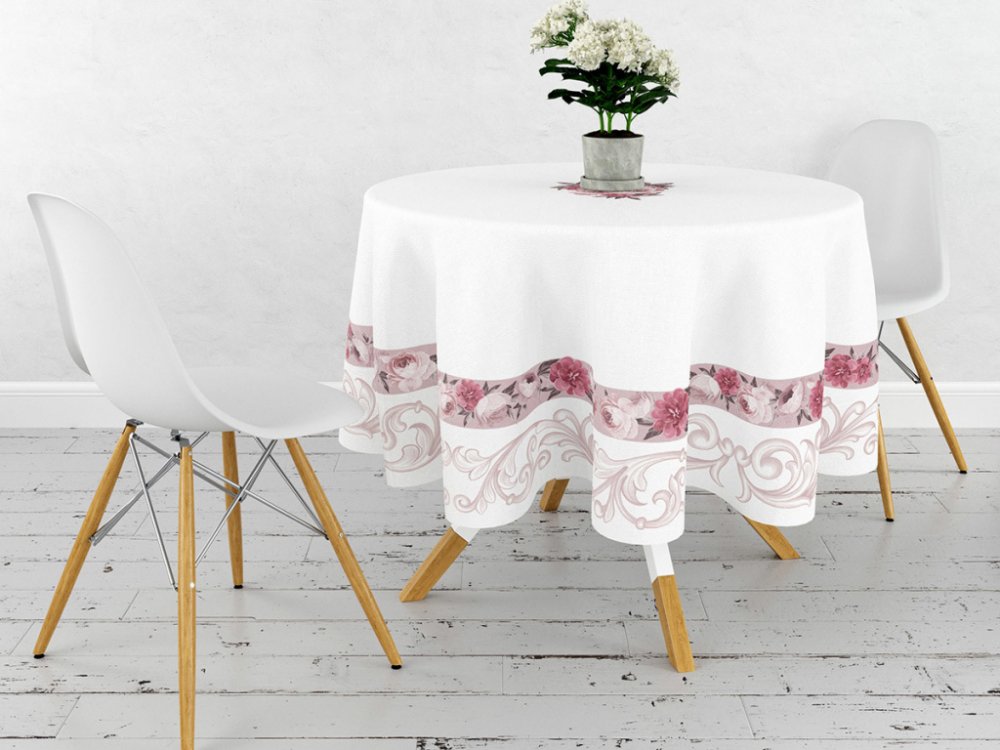 Ubrusy se vzorem dokážou dodat styl i eleganci a taky navodit sváteční atmosféru v kuchyni či jídelně. Tyto ubrusy na kulatý stůl, nejenže přispějí k stylovému stolování, ale účinně ochrání povrch stolu proti poškrábání. Ubrus je vyroben z teflonového materiálu, který snadno vyperete, rychle vysušíte a je opět nachystaný zkrášlit vaši domácnost a zpříjemnit vám vzácné chvíle strávené s rodinou. Spodní strana ubrusu je bílá, kraje jsou ukončeny zdobným obloučkovým zastřižením bez obšití.Ubrusy můžete efektně doplnit o sedáky na židle, ale i o utěrky v oblíbené barvě a získáte interiér vyladěný do puntíku.