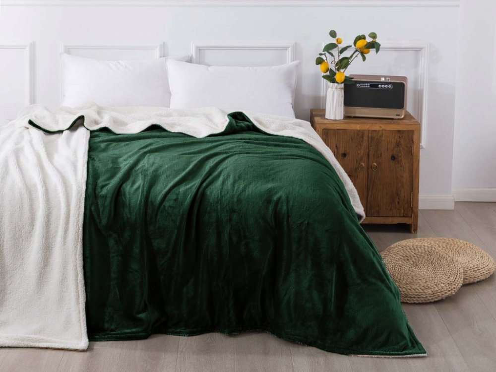 Zelená deka s bílým beránkem 200x230 pro milovníky tepla a krásných barev