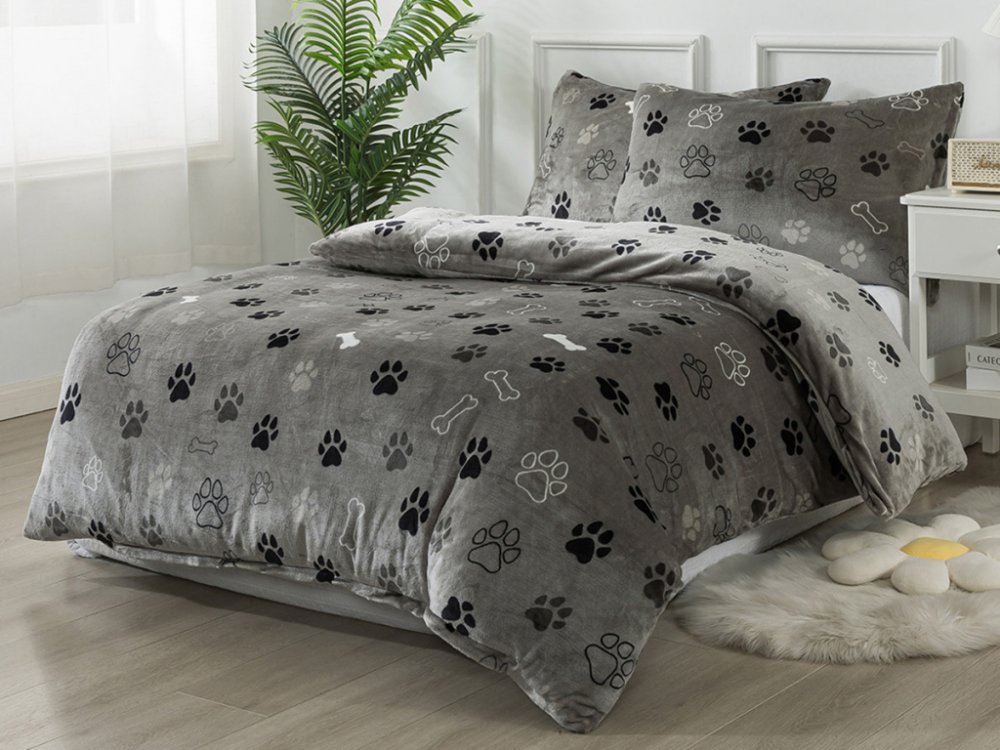 Xpose Mikroplyš povlečení Tlapičky Exclusive šedé 140x200 70x90