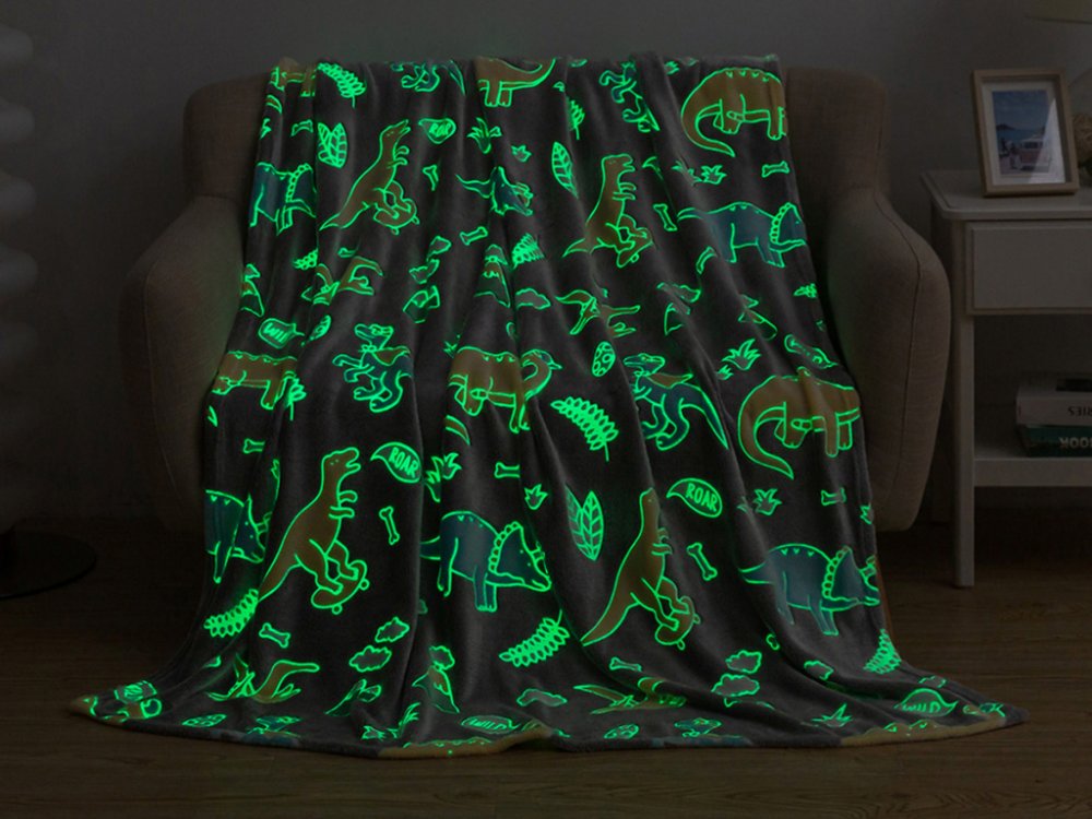 Zahřeje i pohladí. Ano, řeč je o svítící dece z mikroplyše. Uchvátí malé milovníky pravěkých příběhů, a bude oblíbeným kouskem jako přehoz či podložka při hrách na zemi, nebo přikrývka, která před spánkem uklidní svítícím obrysem vzoru. Mikroplyšové deky dětem skvěle poslouží i jako cestovní přikrývka na výletě, či v autě. Je vyrobena z mimořádně hebkého materiálu mikroplyše, který je lehoučký, skladný, a přitom krásně hřeje.