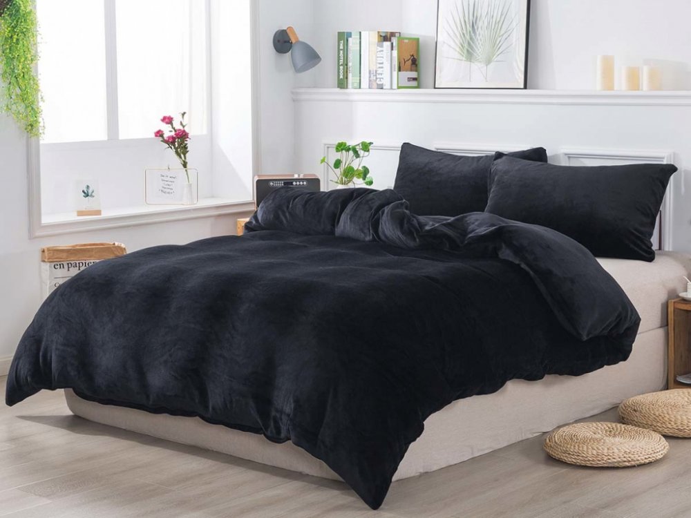 Hledáte ideální ložní prádlo na zimu a černá barva je váš top? Pak je mikroplyšové povlečení tou správnou volbou. Jednobarevné sametově hedvábné povlečení JORGA bude v černé barvě dominantou světlého interiéru. Tmavý dezén krásně doladí i téma na Halloween. Mikroplyš je hřejivý materiál tvořený jemným mikrovláknem s krátkými chloupky, které má výjimečnou schopnost vytvářet v posteli útulno a teplo. Vybírat můžete z mnoha působivých barevných variací.Francouzské povlečení na zip je vhodné na dvoulůžko. Pro dokonalý efekt si vylaďte ložnici do puntíku a kombinujte barevně povlečení, deky, povlaky a mnoho dalšího v sekci mikroplyš.