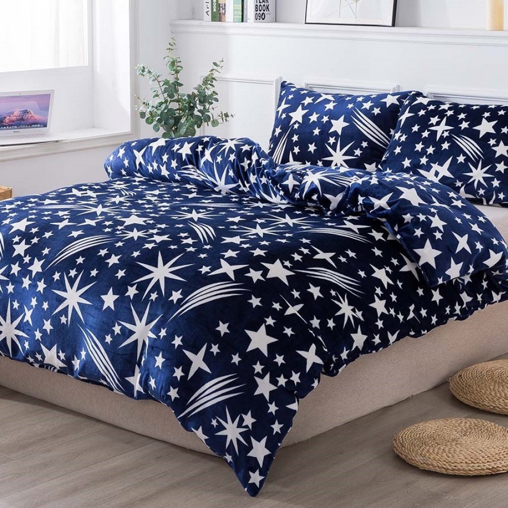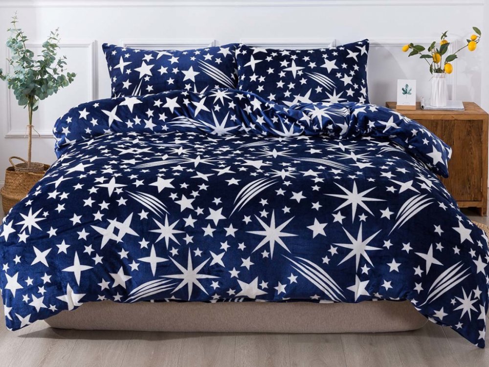 Hledáte ideální ložní prádlo na zimu? Pak je mikroplyš právě pro vás! Heboučké mikroplyšové povlečení SAMIRA s vyobrazenou temně modrou noční oblohou působí tajemným dojmem a je jako stvořené pro rozjímání a navození vyrovnané nálady. Tento jiskřivý dizajn vkusně doladí každý interiér. Mikroplyš je hřejivý a jemný materiál s výjimečnou schopností vytvářet v posteli útulno a teplo.