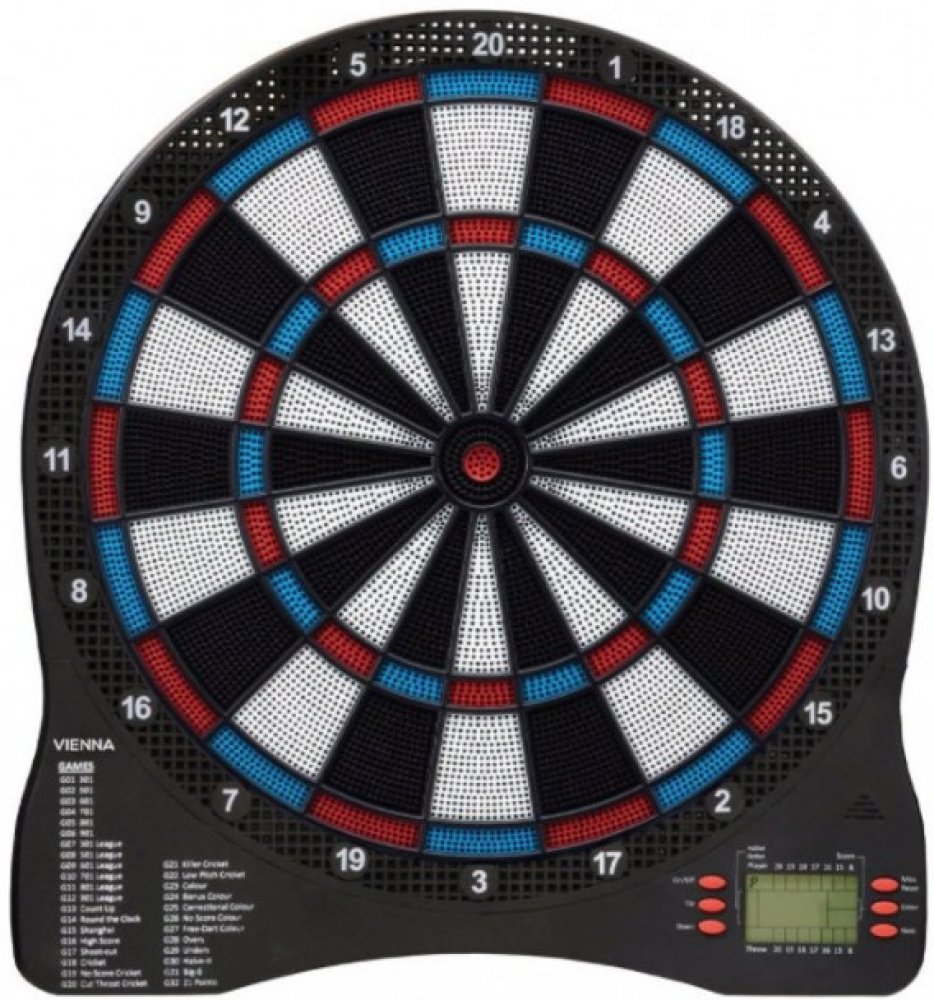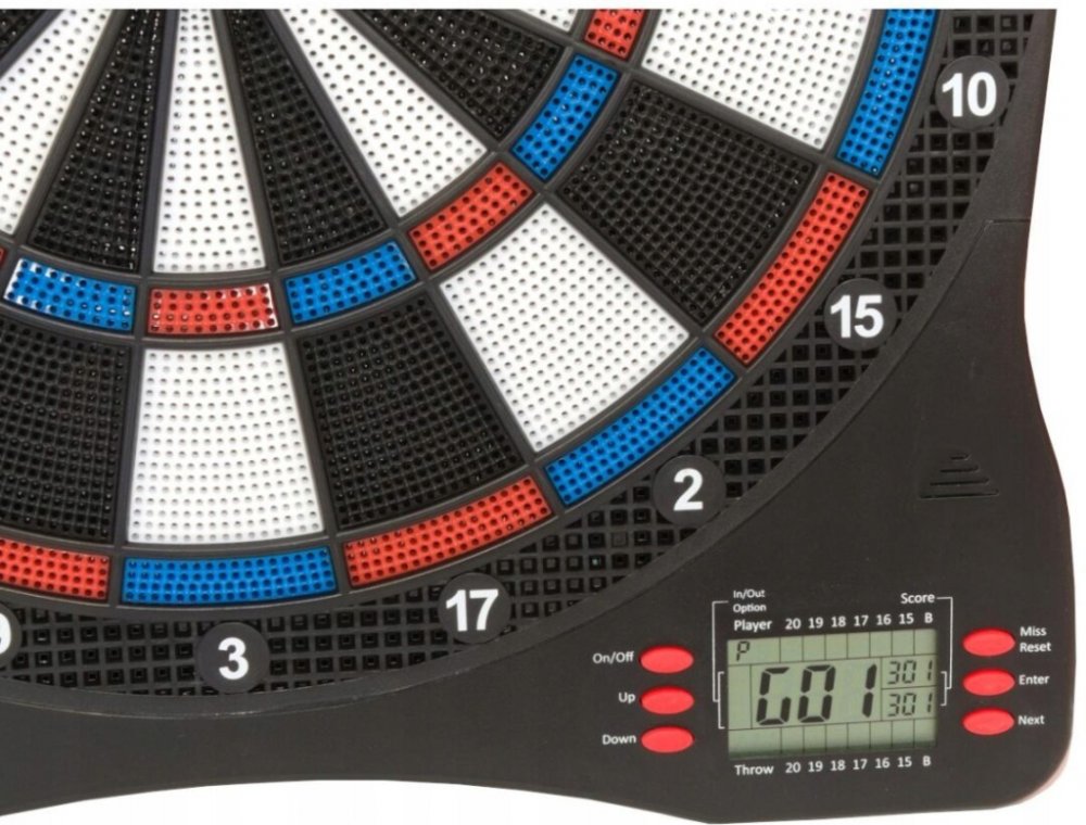 Šikovný elektronický terč v atraktivním designu. Díky 31 vestavěným hrám a více než 285 variantám si mohou vybrat začátečníci i pokročilejší hráči. Součastně může hrát 1-8 hráčů, výchozí počet hráčů je 2. Terč je navržen na napájení 3 x 1,5 V AA (LR6) baterií (není součástí). Pro úsporu baterií je tento terč vybaven režimem automatického vypnutí. Pokud terč nepoužíváte, přejde za 30 minut do režimu spánku.