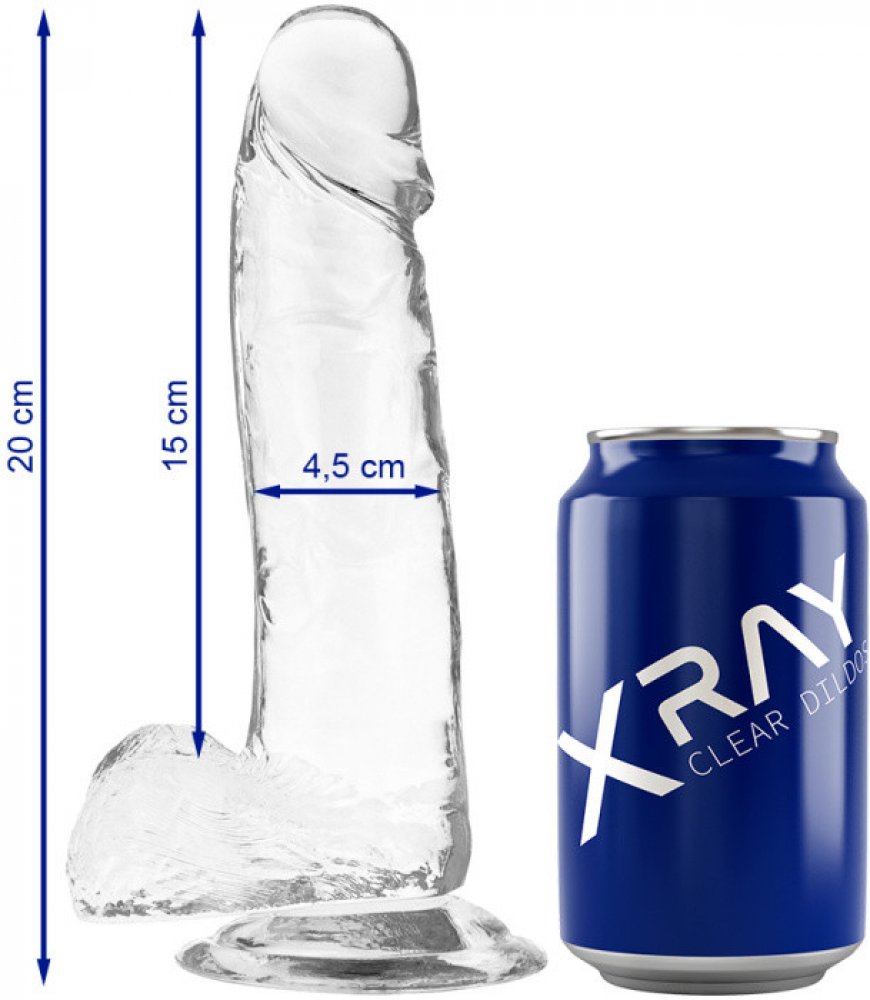 Xray Clear Cock With Balls 20cm X Ray Clear je autentický zážitek z potěšení se speciálně vyvinutou recepturou, která optimalizuje hladký a hedvábný pocit s pevností zcela transparentního realistického dilda. X Ray je vyroben z nejnovější kvalitní verze materiálu Jelly 2020, zcela bez zápachu, měkký na dotek a velmi snadno se čistí. Světlost a realistický tvar splní všechny vaše fantazie. Díky své flexibilní hřídeli, detailním žilám a definované hlavě osloví X Ray Clear vaše smysly vizuálně i fyzicky. Výkonný podstavec přísavky se drží téměř na jakémkoli rovném povrchu a umožňuje kompatibilitu s každým postrojem pro dildo. Testován hypoalergenní želé materiál bez ftalátů, voděodolný Snadná údržba. Xray's Jelly Material je šetrný k pokožce, neporézní, a proto vysoce hygienický. Měkká a pružná struktura zajišĽuje, že materiál Jelly je příjemný a snadno se na něj nasazuje. Rychle absorbuje a ukládá vaše tělesné teplo. Pro použití lubrikantů doporučujeme lubrikant na vodní bázi. To je šetrné k materiálu a zajišĽuje to, že si udrží texturu po dlouhou dobu. Po použití jej vyčistěte vodním čističem hraček nebo pH neutrálním mýdlem a teplou vodou pro dokonalé čištění. Značka XRAY, produkt nejvyšší kvality za dostupnou cenu, který zaručuje dokonalou kombinaci ceny a potěšení, definuje pevný a realistický pocit. Celková délka 20 cm, průměr 4,5 cm