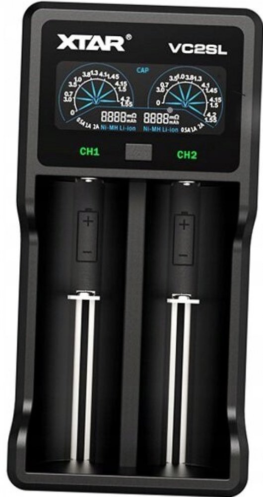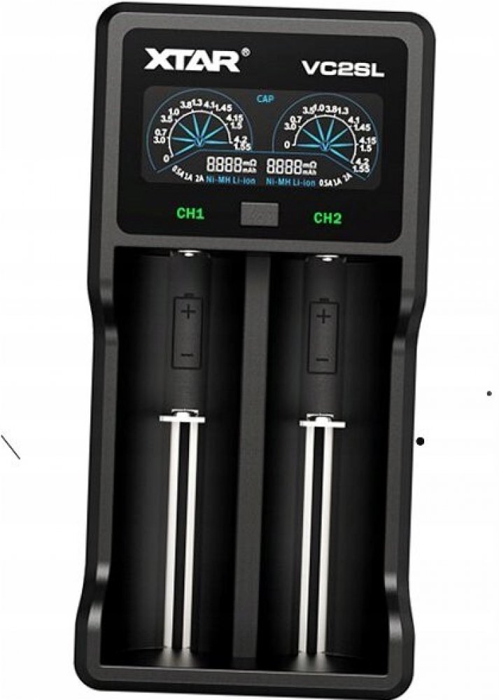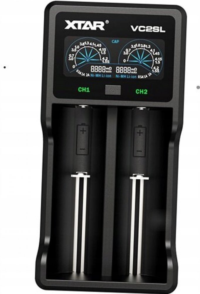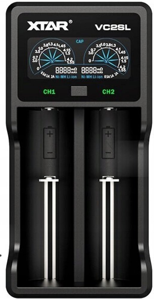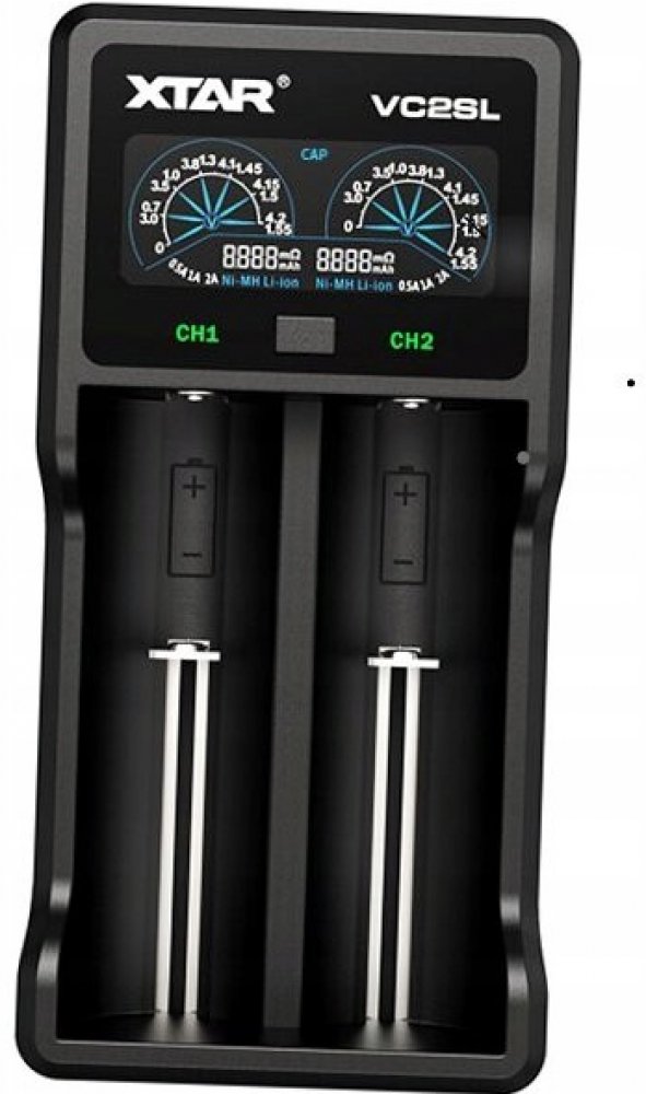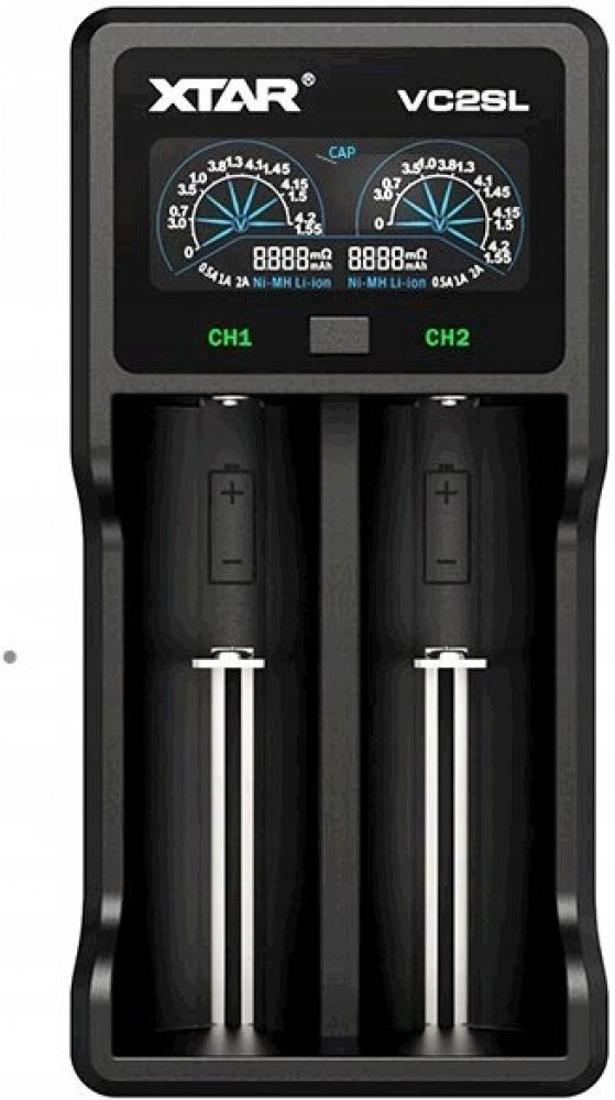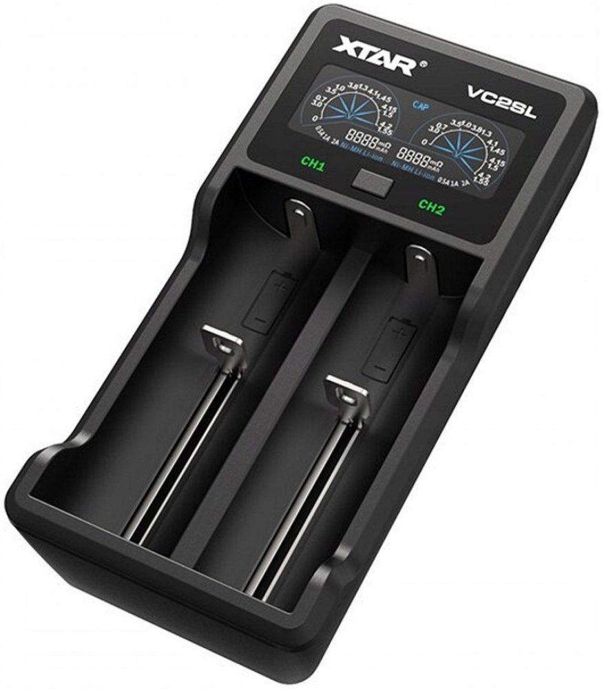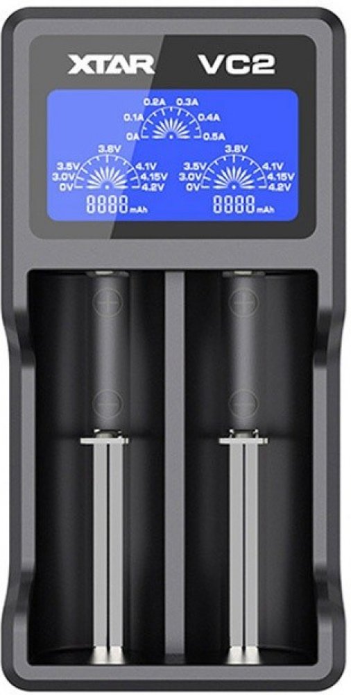 XTAR VC2 je kvalitní multifunkční nabíječka článků a dalších baterií od výrobce XTAR. Disponuje dvěma individuálními nabíjecími sloty. Lze nabíjet dvě baterie současně, případně jednu baterii samostatně. Nabíječka XTAR VC2 podporuje většinu běžně dostupných článků typu Li-ion, IMR, INR, ICR. Ve vrchní části nabíječky se nachází velký a přehledný LCD displej, který zobrazuje všechny potřebné parametry během nabíjení. Na displeji se zobrazuje dobíjecí proud baterií, napětí baterií a kapacita baterií. V případě kompletního dobití článku se tento údaj zobrazí přímo na displeji. Nabíječka VC2 také nabídne funkci zobrazení chybových hlášek, pokud se během používání na displeji zobrazí NULL, jedná se o vadnou baterii, v případě zobrazení ERR je baterie vložena obráceně, nebo došlo k jejímu zkratu. Tato funkce ušetří váš čas během nabíjení.