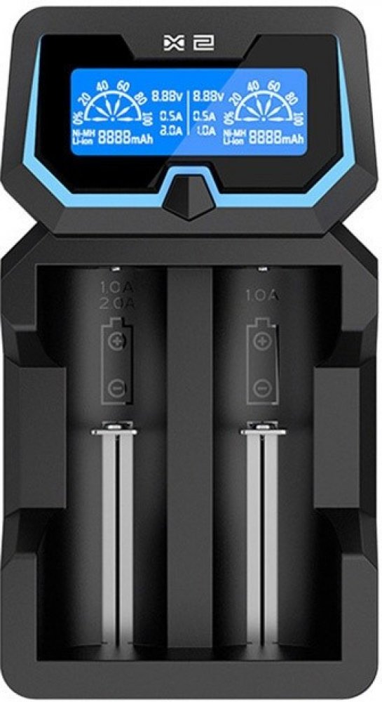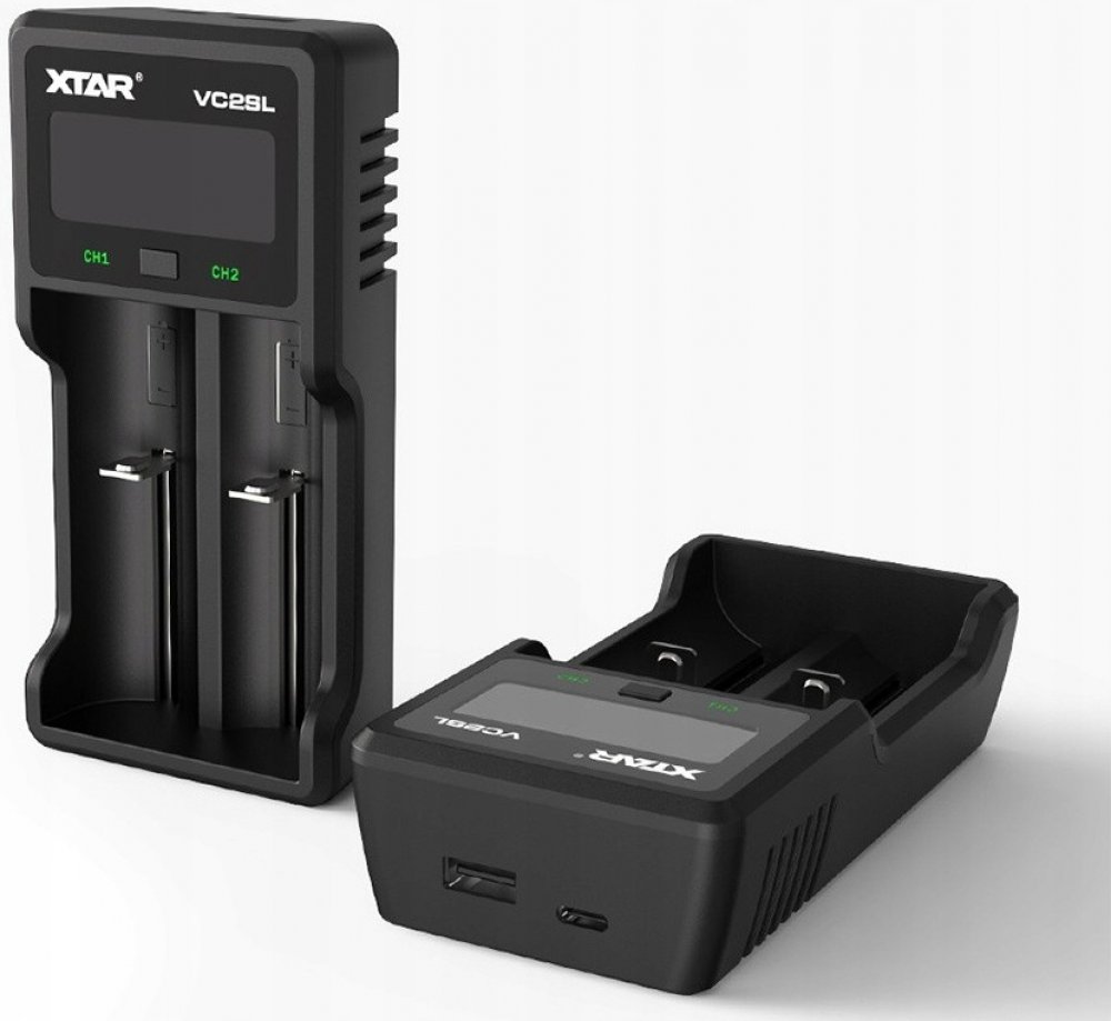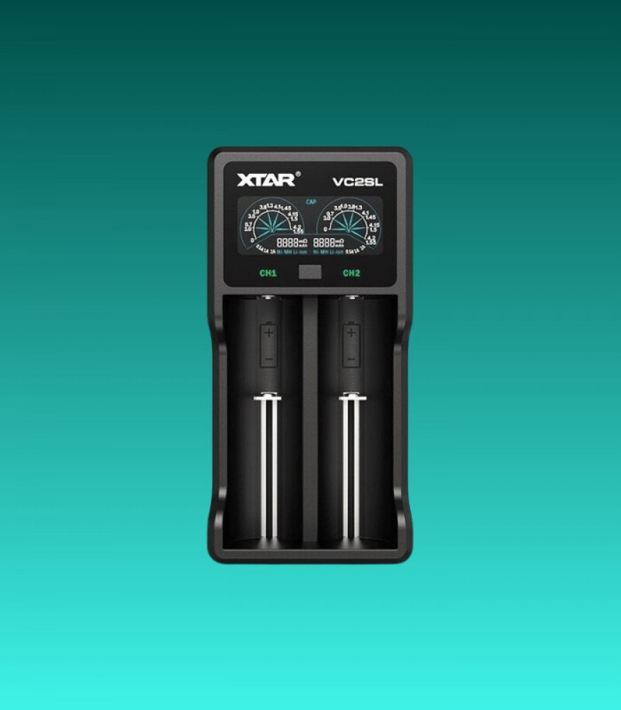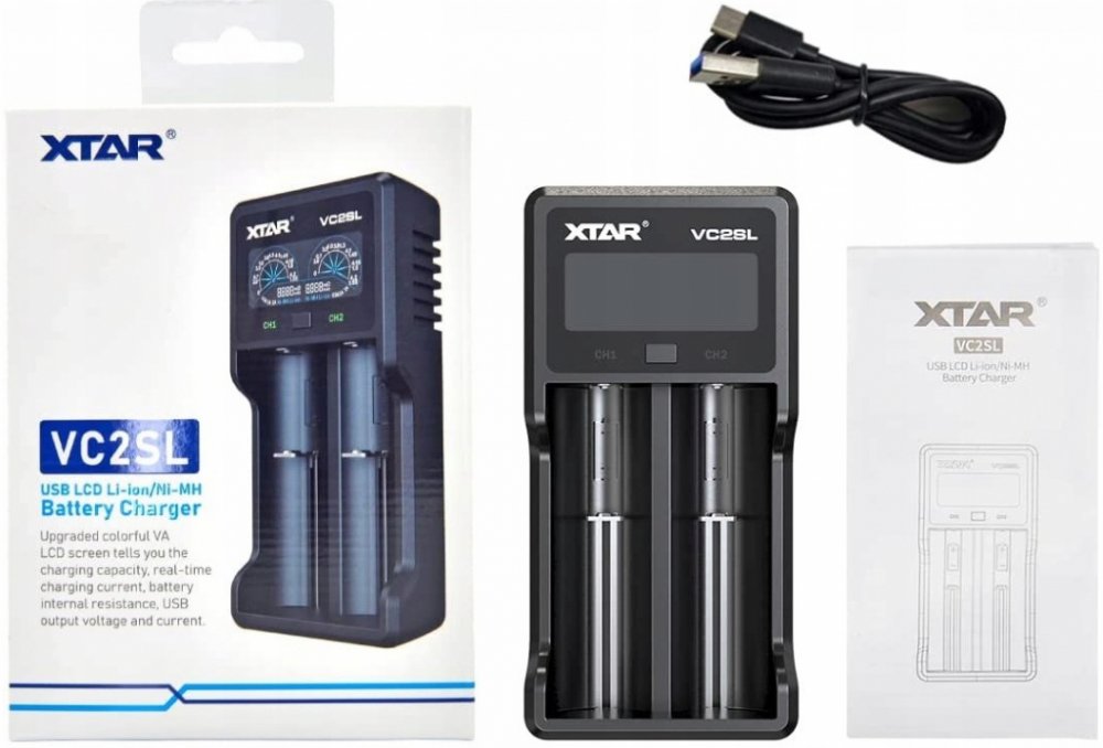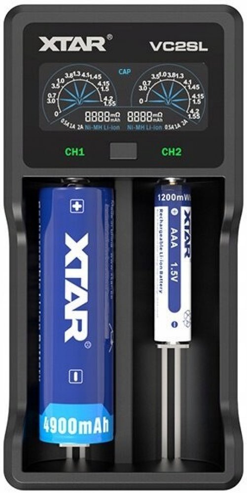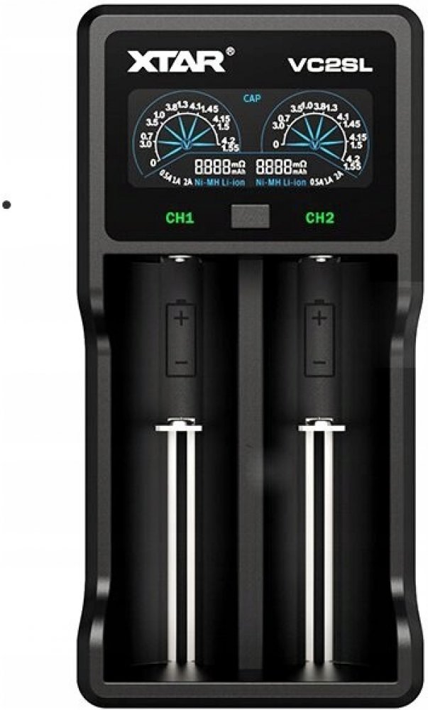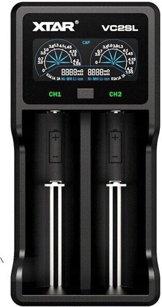XTAR VC2 je kvalitní multifunkční nabíječka článků a dalších baterií od výrobce XTAR. Disponuje dvěma individuálními nabíjecími sloty. Lze nabíjet dvě baterie současně, případně jednu baterii samostatně. Nabíječka XTAR VC2 podporuje většinu běžně dostupných článků typu Li-ion, IMR, INR, ICR. Ve vrchní části nabíječky se nachází velký a přehledný LCD displej, který zobrazuje všechny potřebné parametry během nabíjení. Na displeji se zobrazuje dobíjecí proud baterií, napětí baterií a kapacita baterií. V případě kompletního dobití článku se tento údaj zobrazí přímo na displeji. Nabíječka VC2 také nabídne funkci zobrazení chybových hlášek, pokud se během používání na displeji zobrazí NULL, jedná se o vadnou baterii, v případě zobrazení ERR je baterie vložena obráceně, nebo došlo k jejímu zkratu. Tato funkce ušetří váš čas během nabíjení.