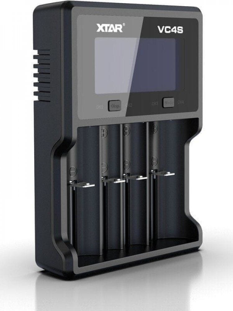 VC4 je profesionální nabíječka procesoru s třístupňovým procesem nabíjení TC / CC / CV a LCD displejem. Nabíjí 1-4 Li-ion 3,6 / 3,7V a Ni-MH články libovolné kapacity ve velikostech AAA / R03, AA / R6, 10440, 14500, 14650, 16340, 17500, 17670, 18350, 18500. na dvou krajních kanálech je možné nabíjet baterie ve velikostech R14, R20, 20700, 21700, 22650, 25500, 26650, 32650.